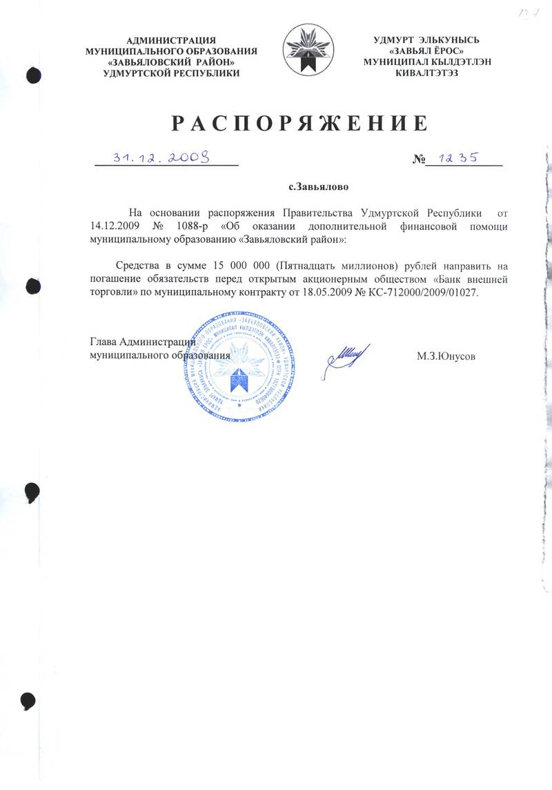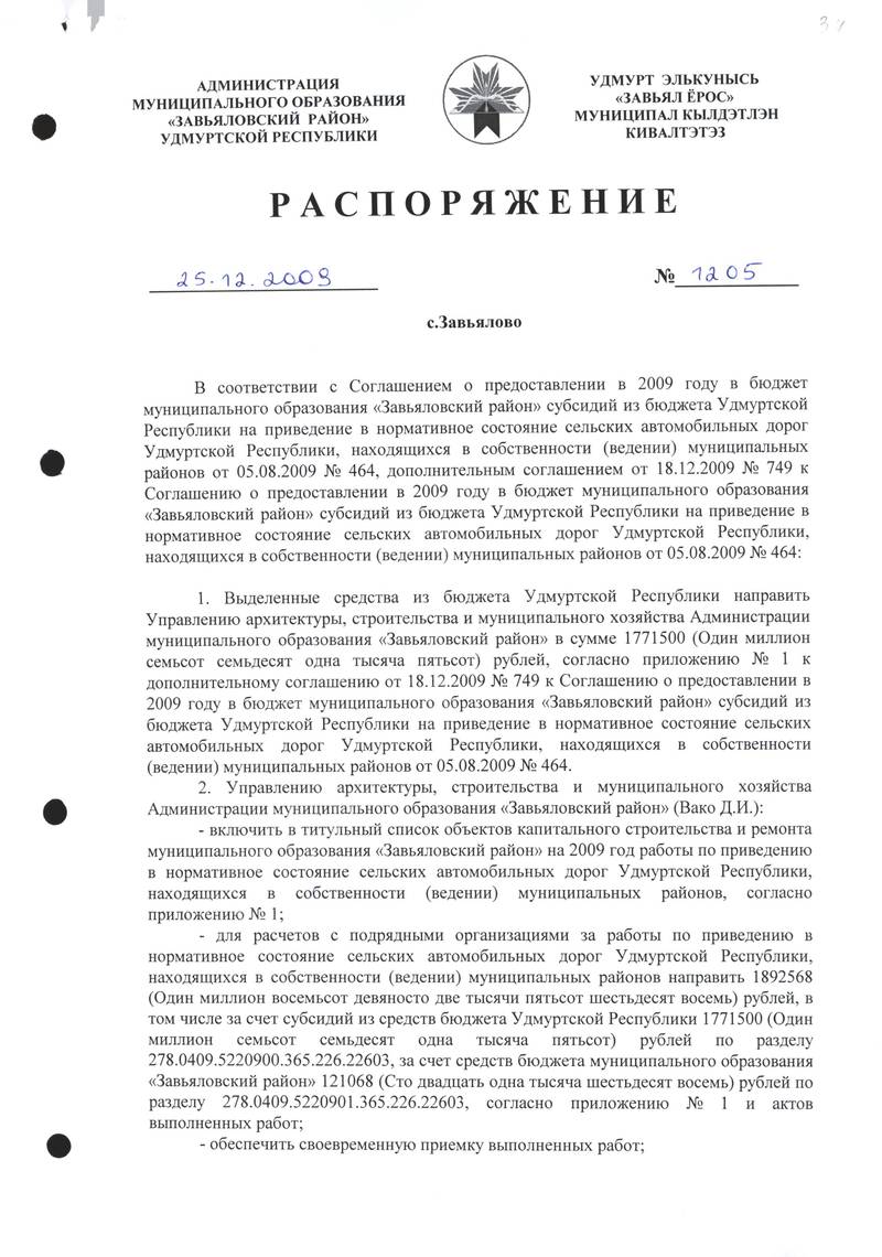 Распоряжения Администрации МО «Завьяловский район» по основной деятельности,том 34