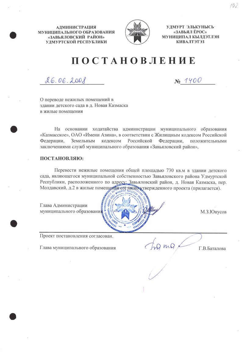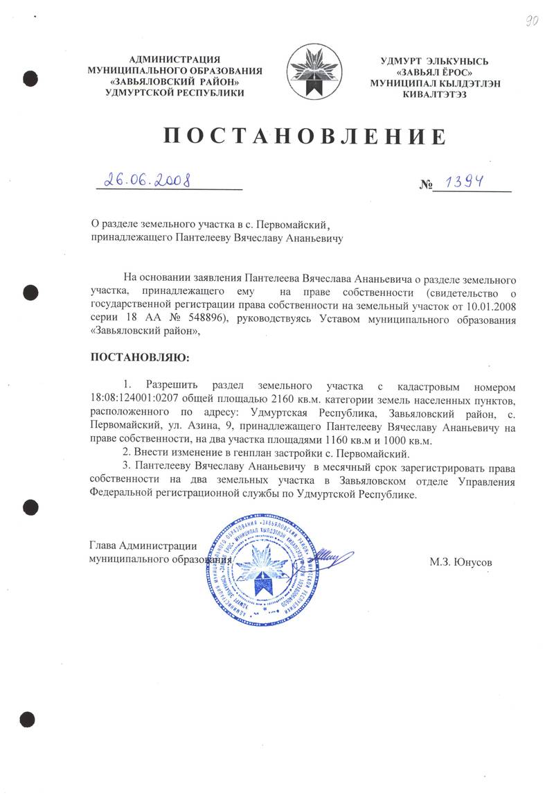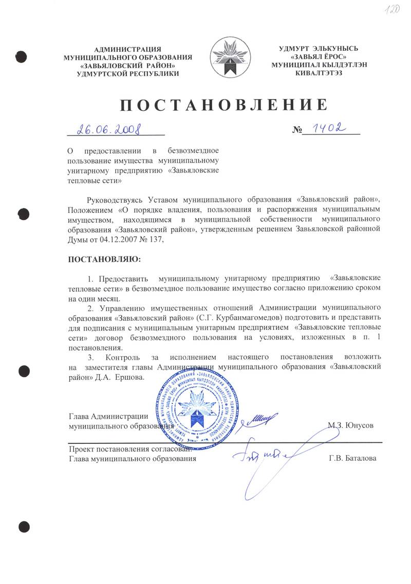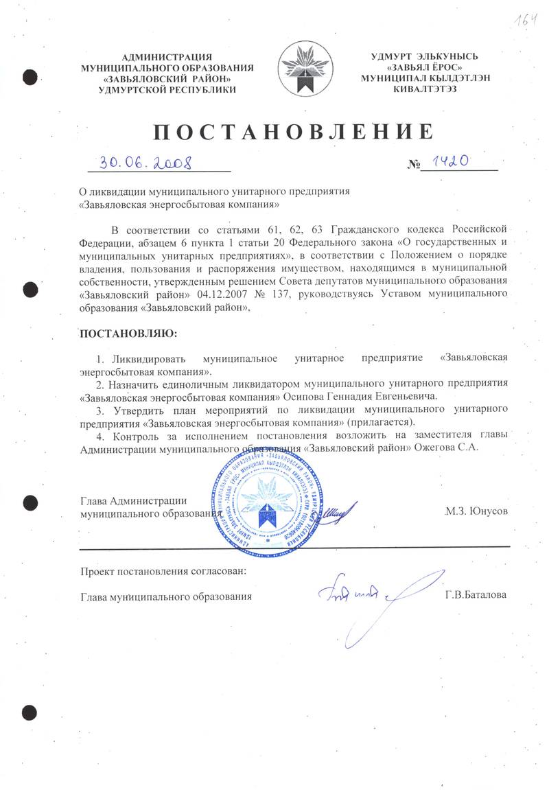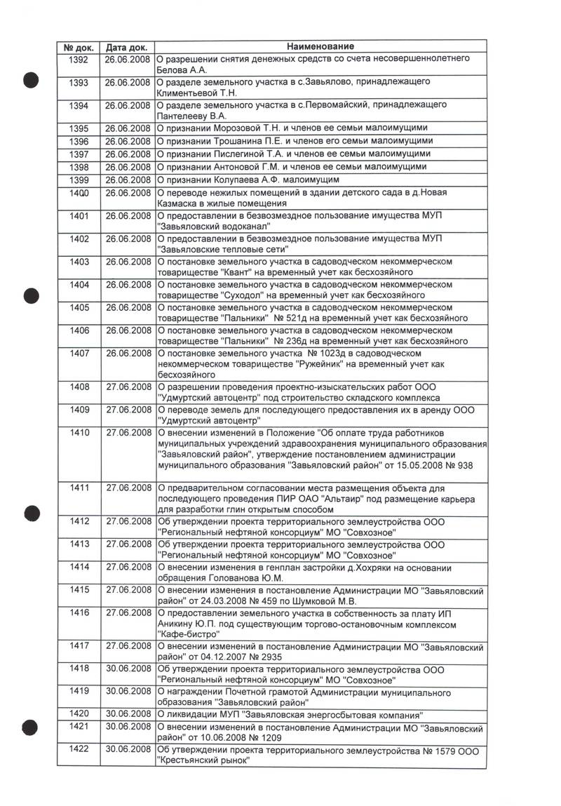 Постановления Администрации МО «Завьяловский район» по основной деятельности,том 20