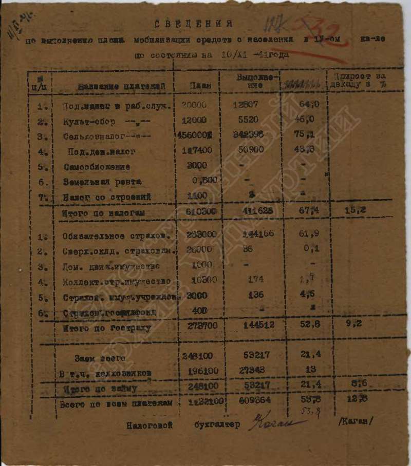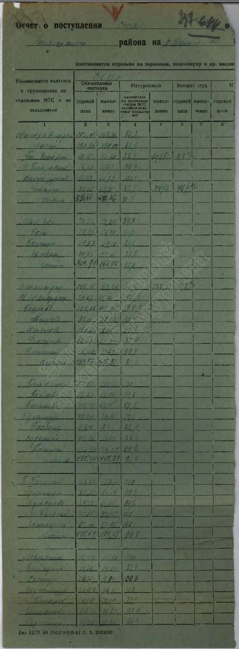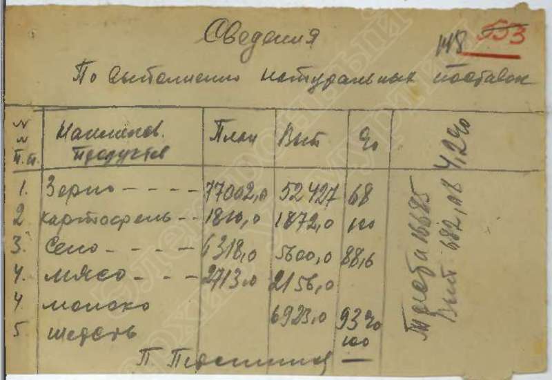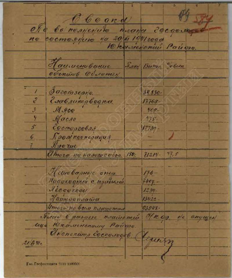 Сведения о выполнении плана сельхозработ, госпоставок и мобилизации средств за 1941 г., том 1
