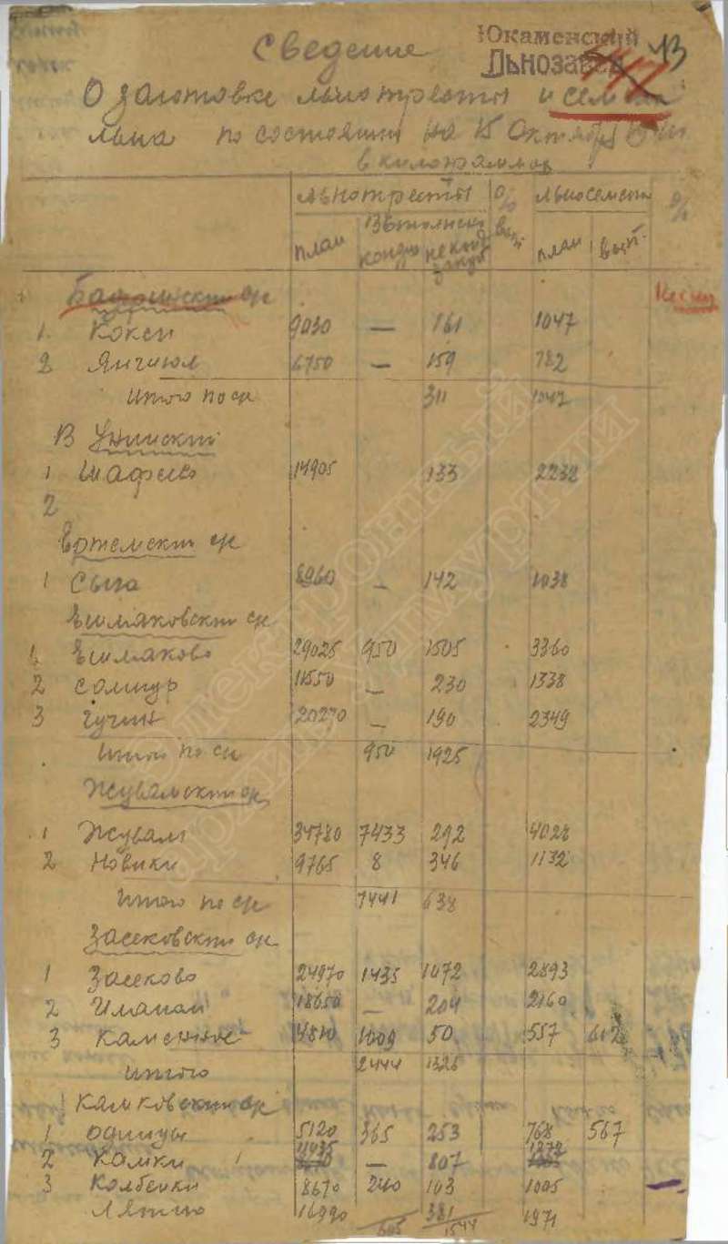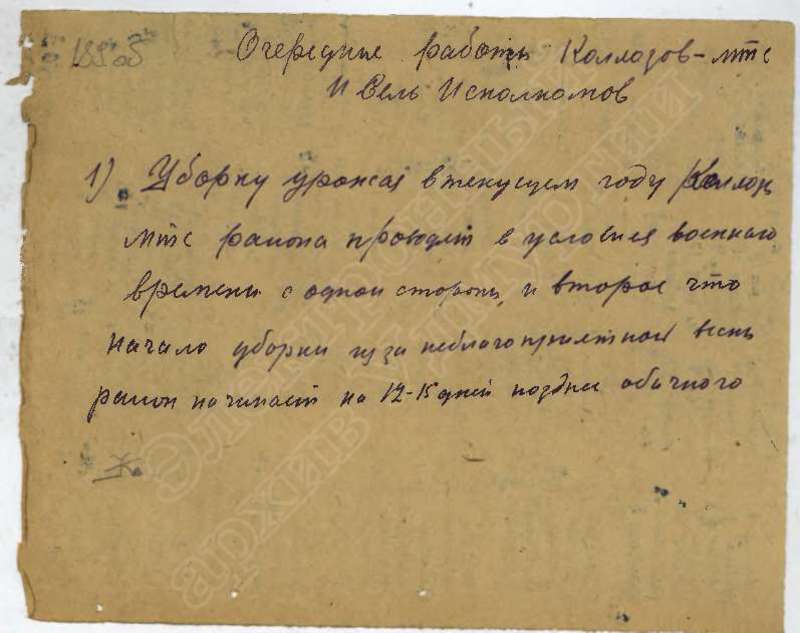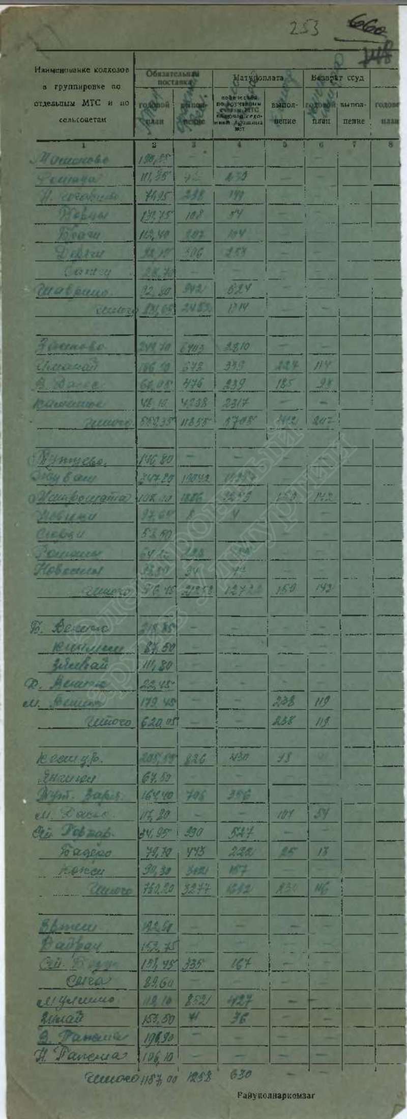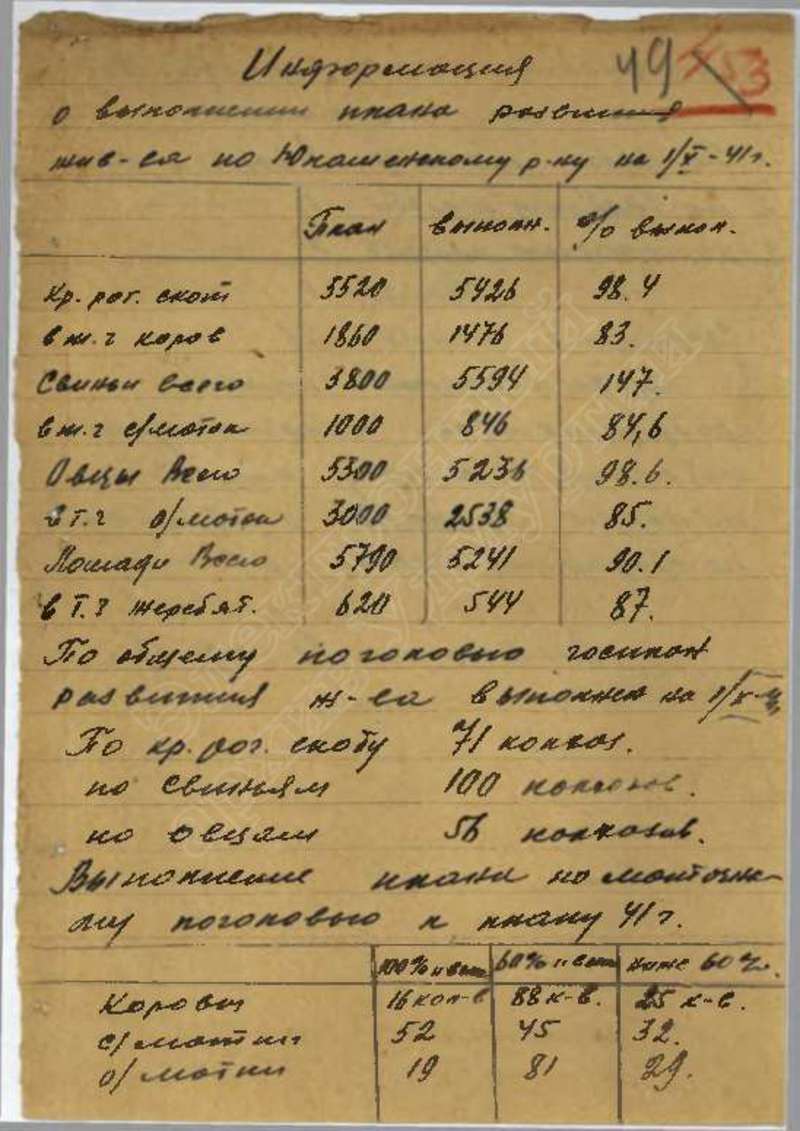Сведения о выполнении плана сельхозработ, госпоставок и мобилизации средств за 1941 г., том 1