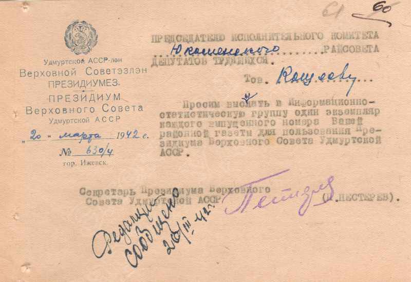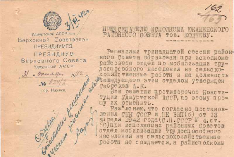 Переписка с Президиумом Верховного Совета УАССР о работе, том 2