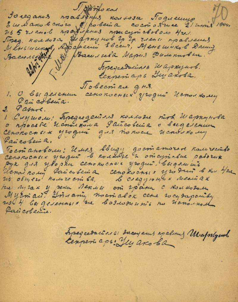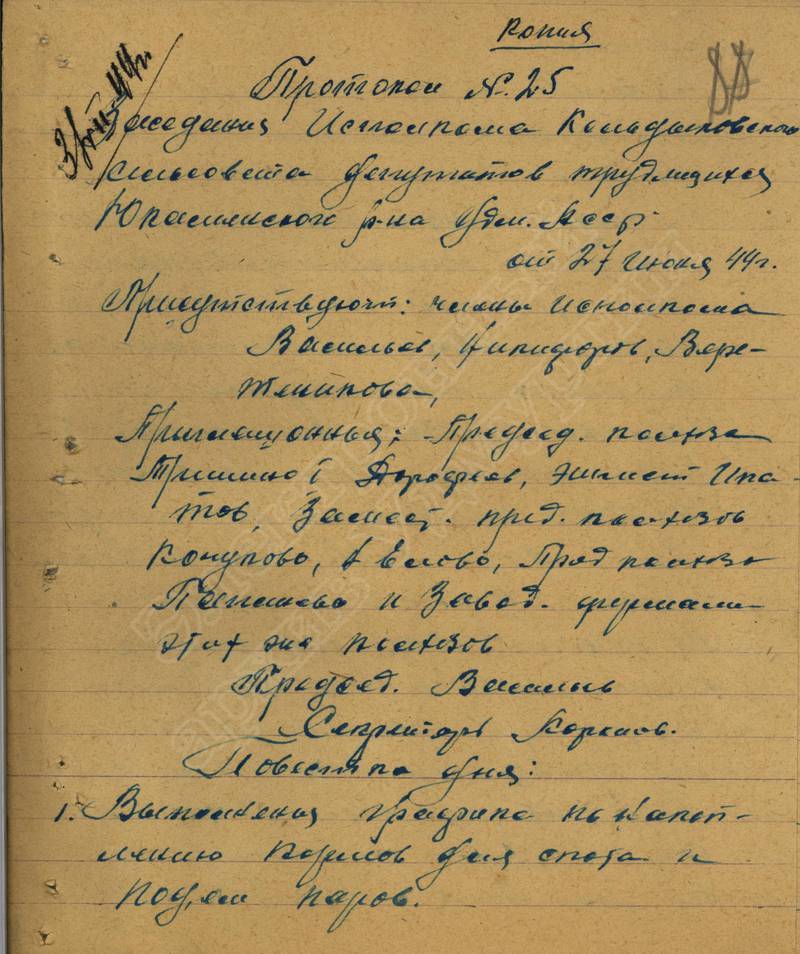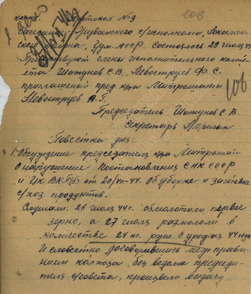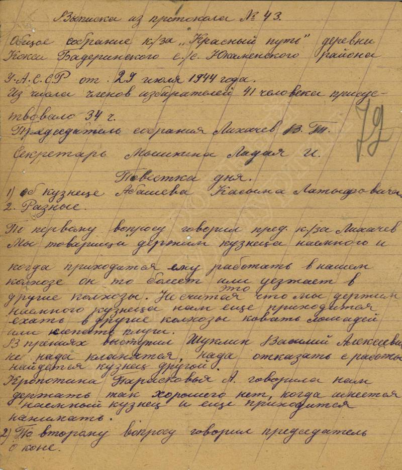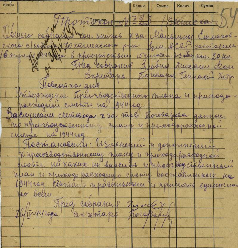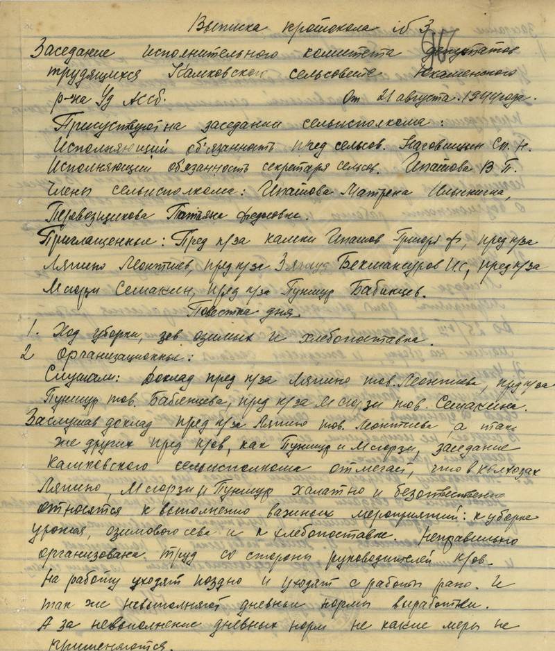 Протоколы заседаний исполкомов сельских Советов, общих собраний колхозников, заседаний правления колхозов