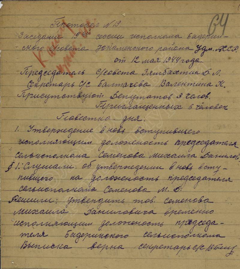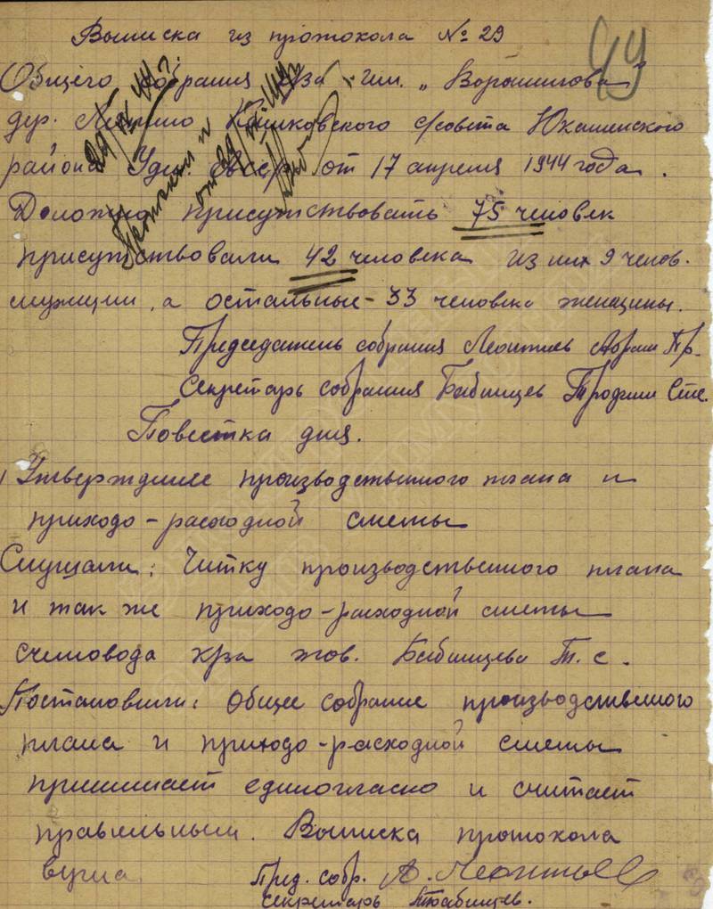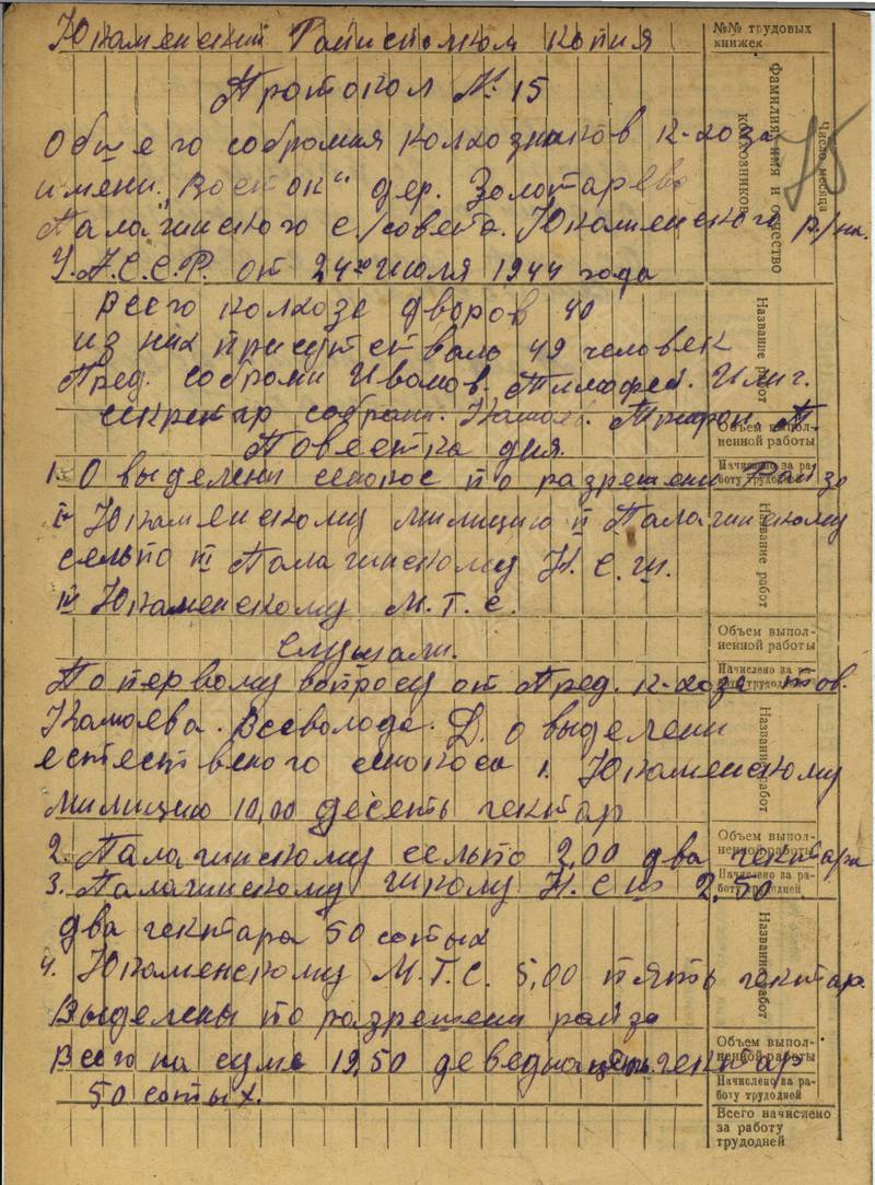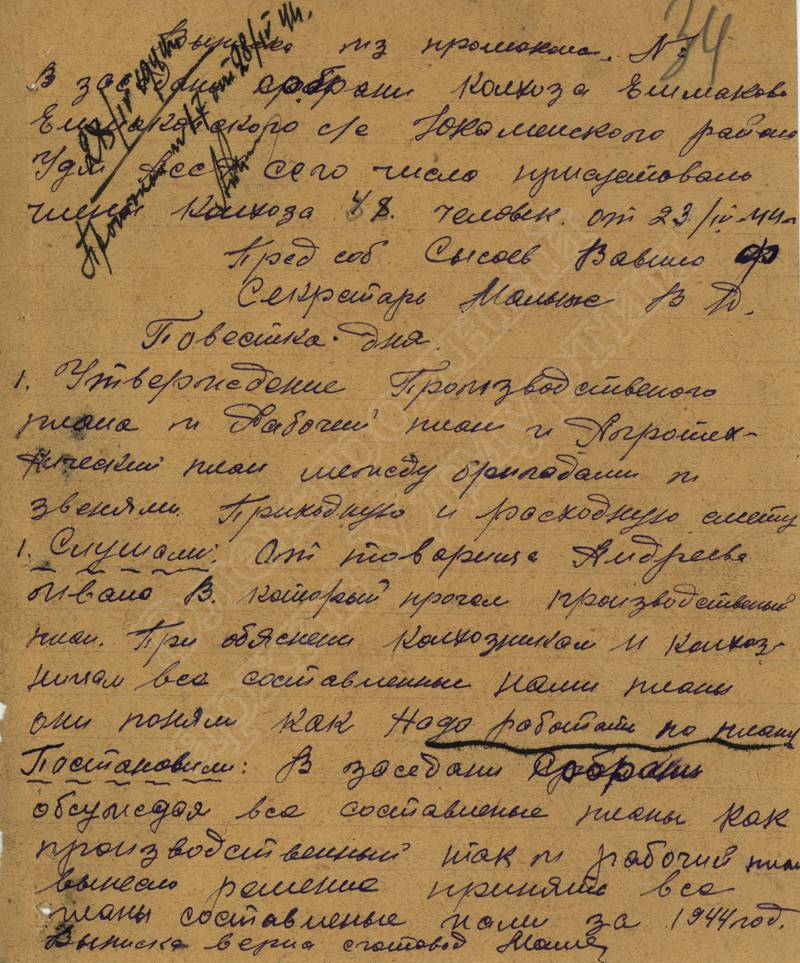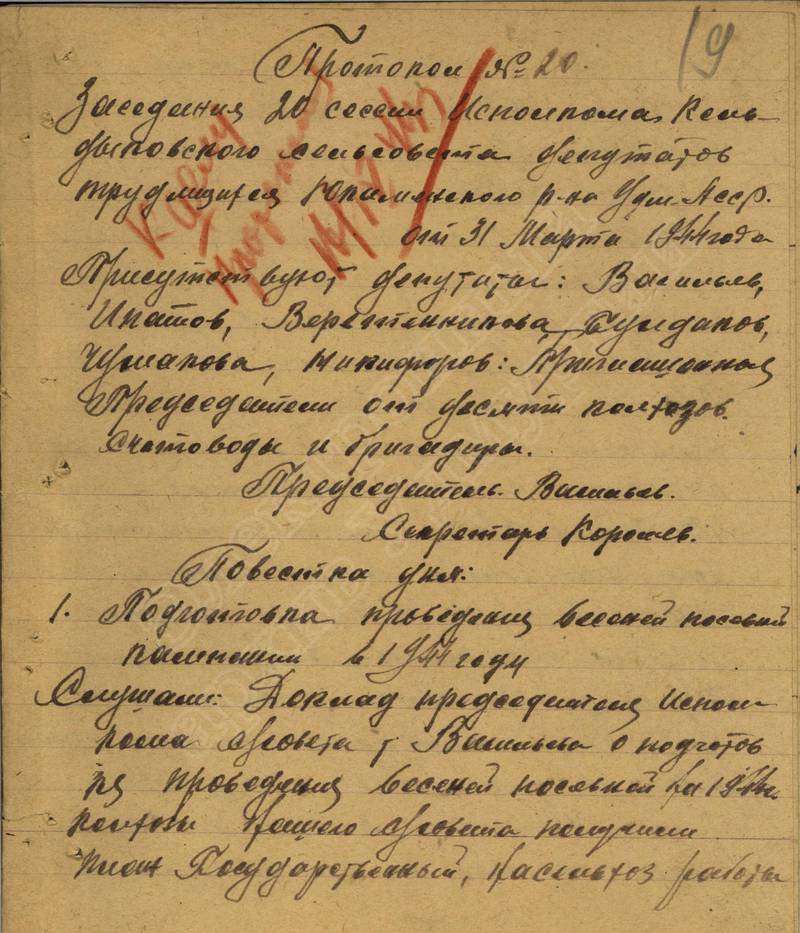 Протоколы заседаний исполкомов сельских Советов, общих собраний колхозников, заседаний правления колхозов