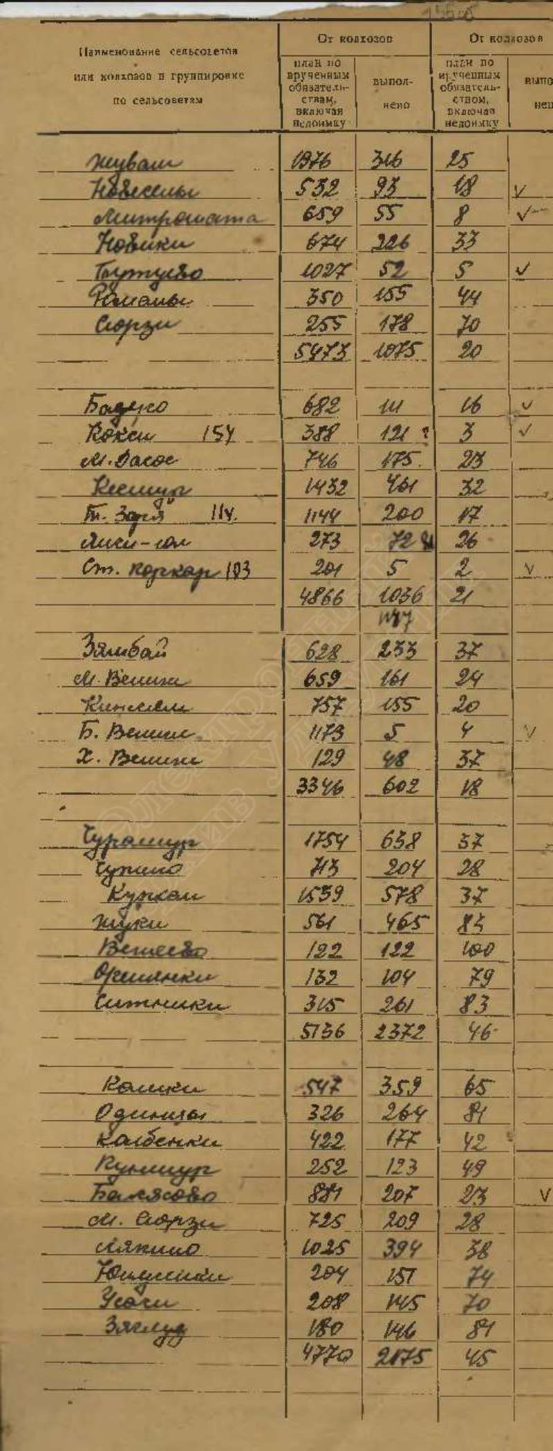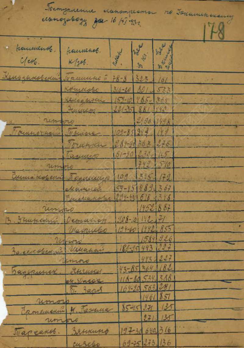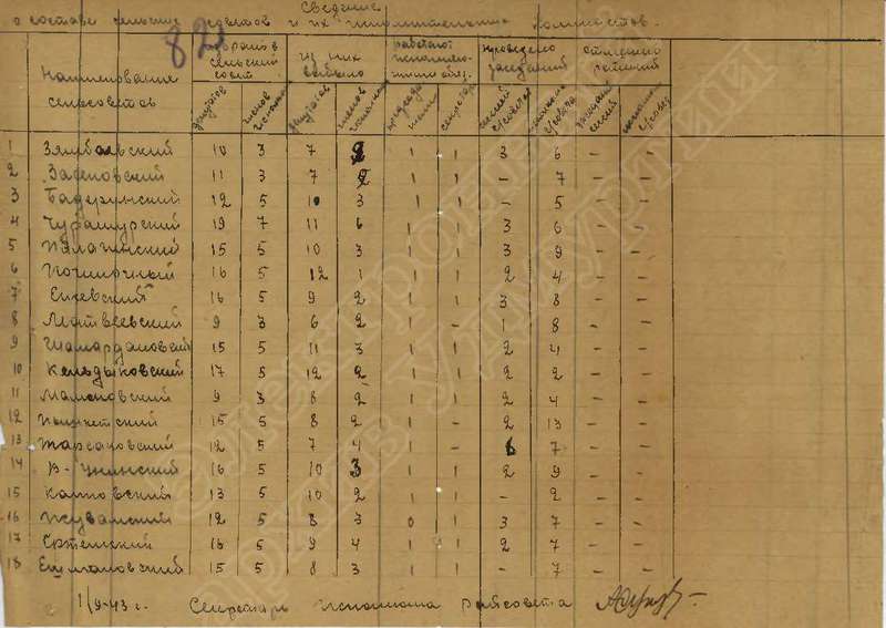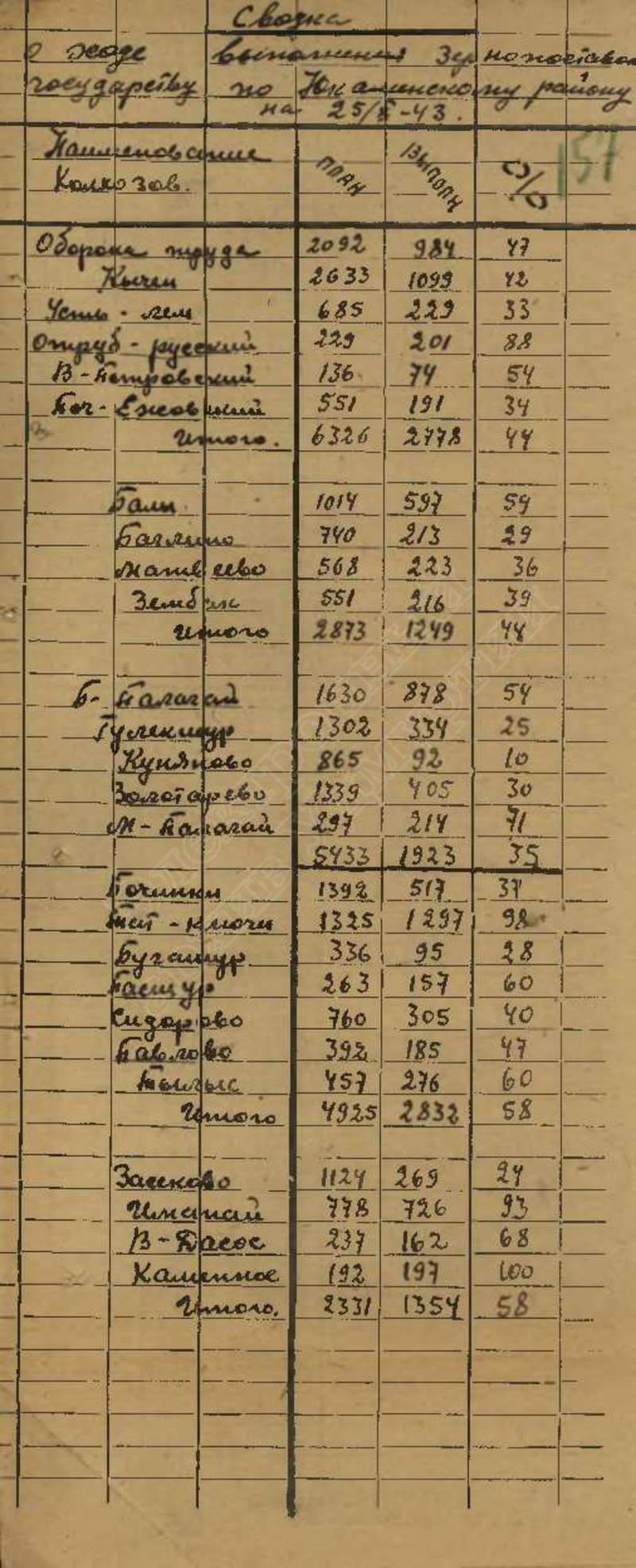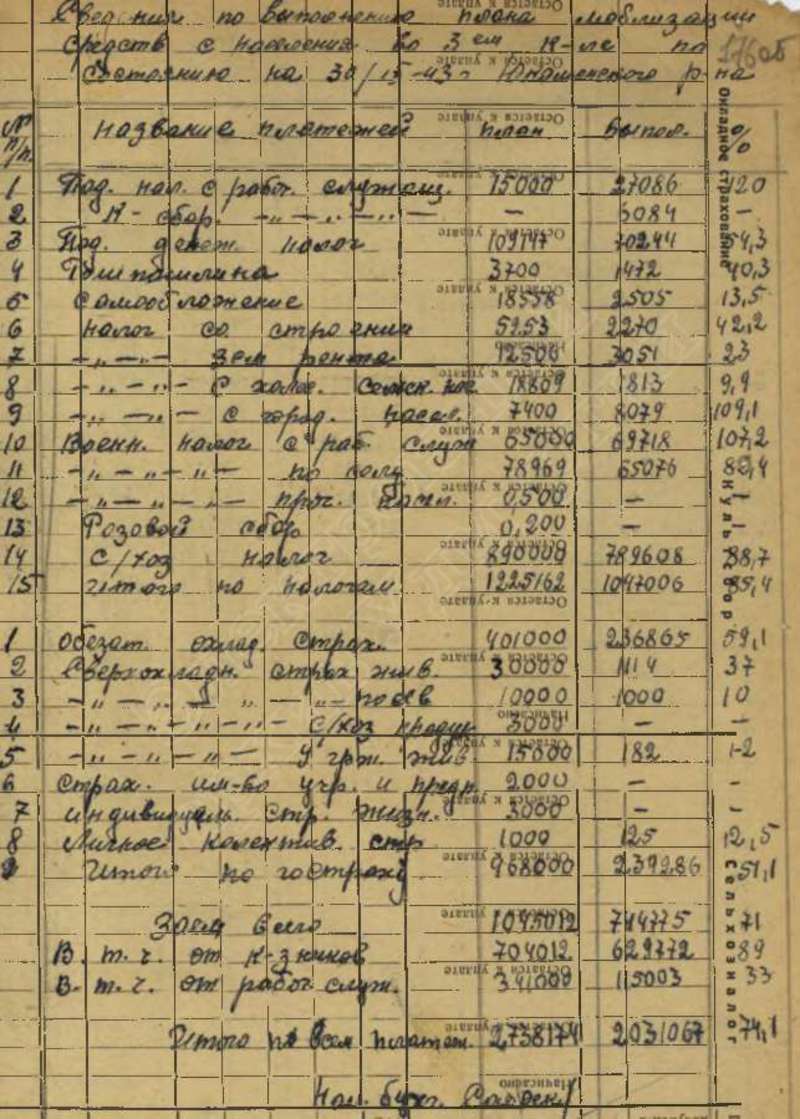 Сведения о выполнении плана сельхозработ за 1943 г.