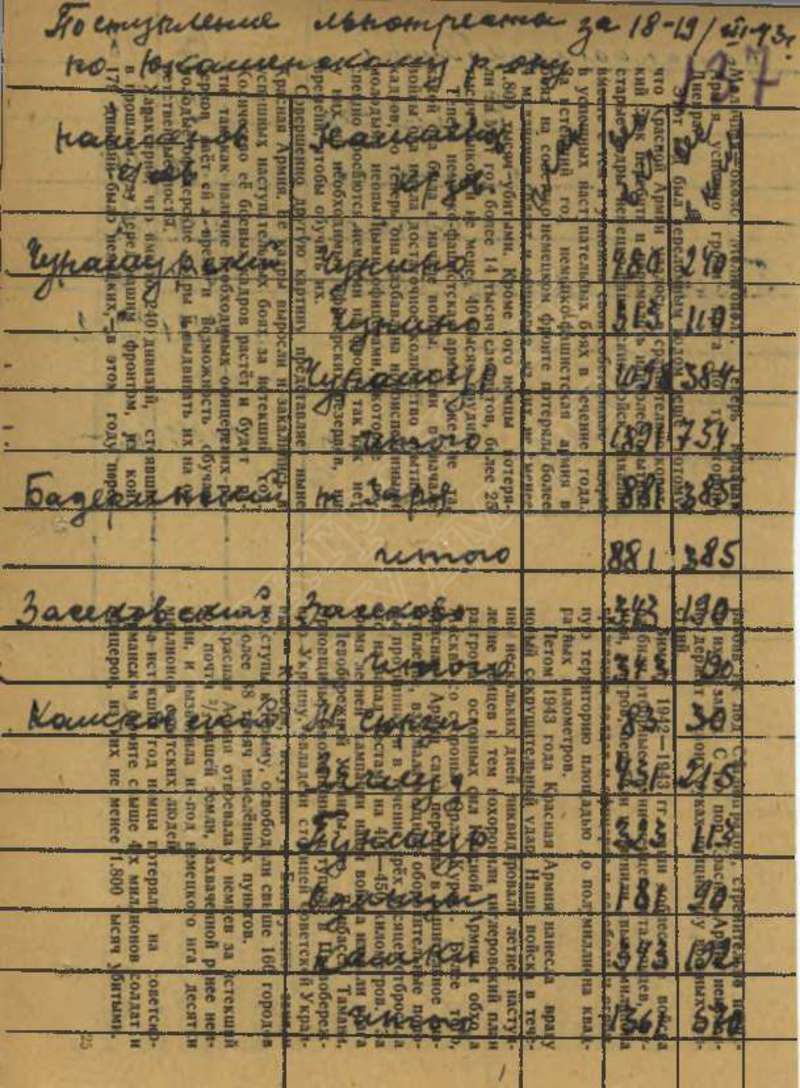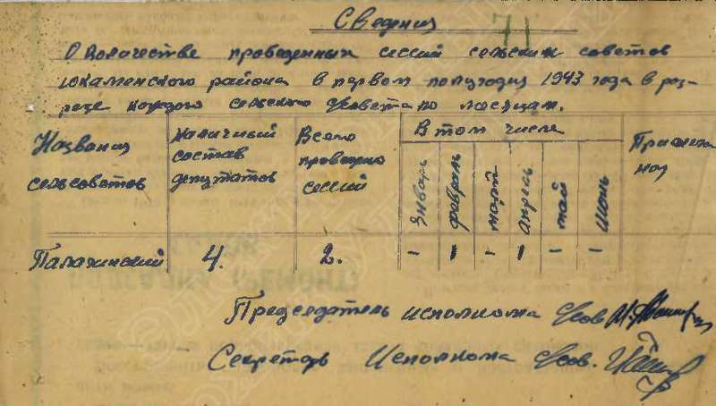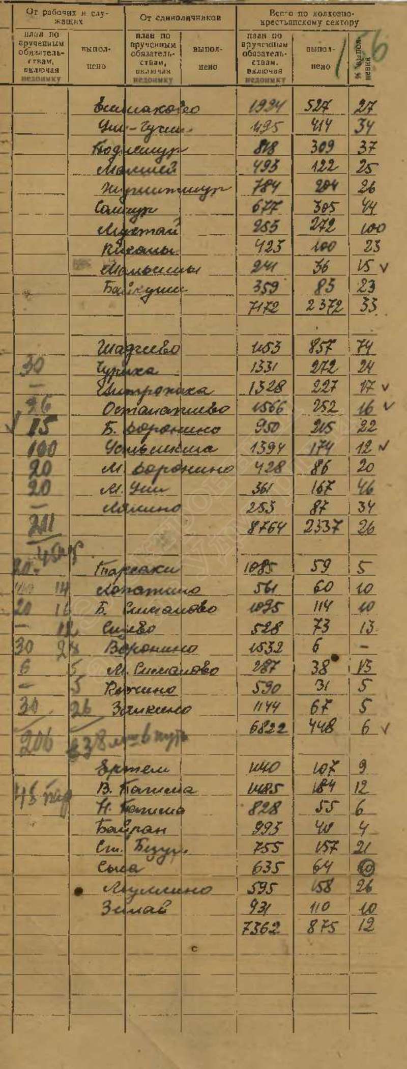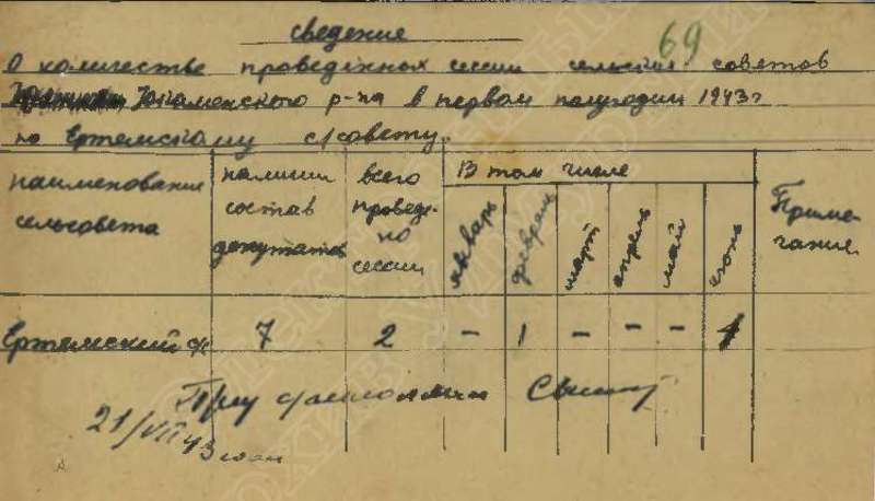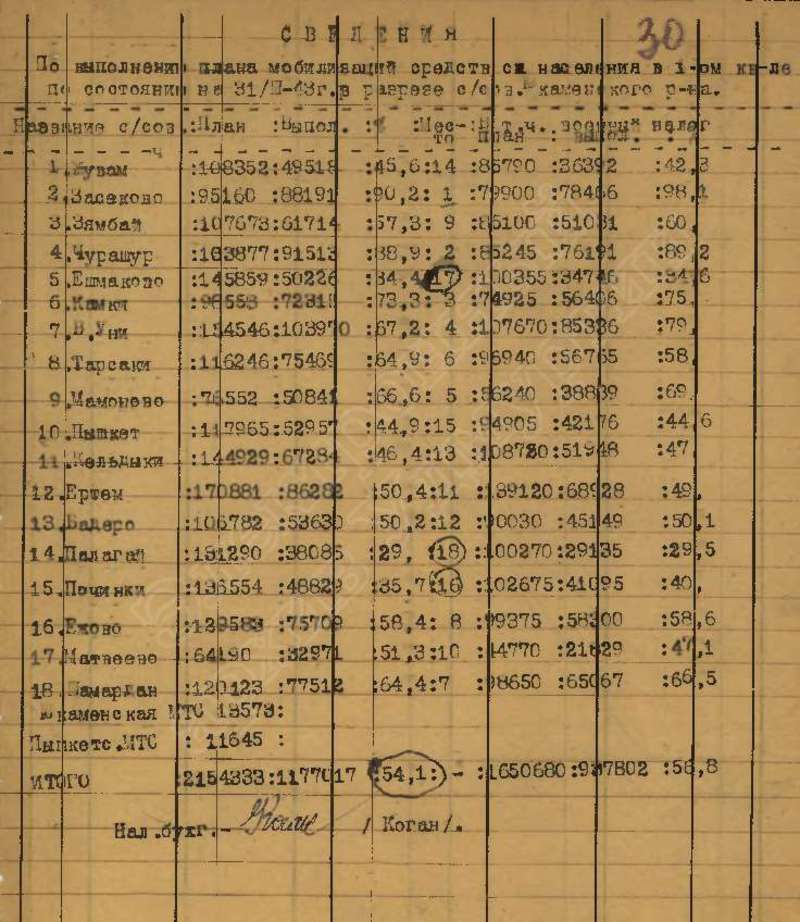 Сведения о выполнении плана сельхозработ за 1943 г.