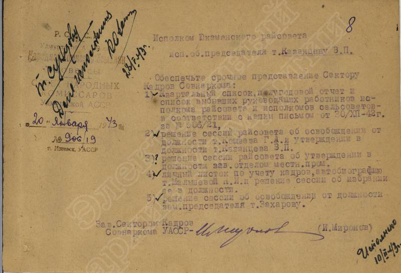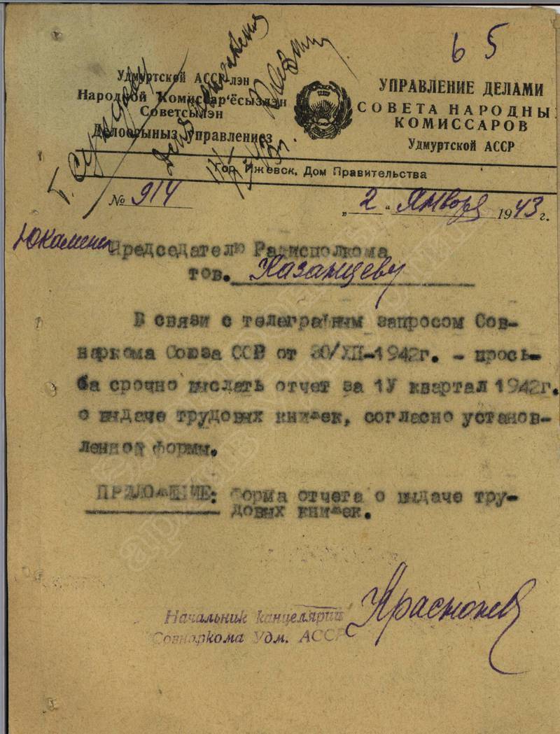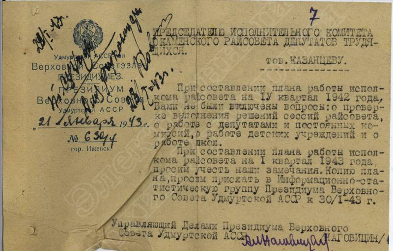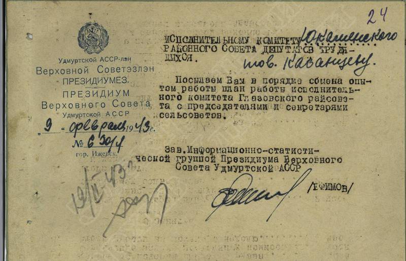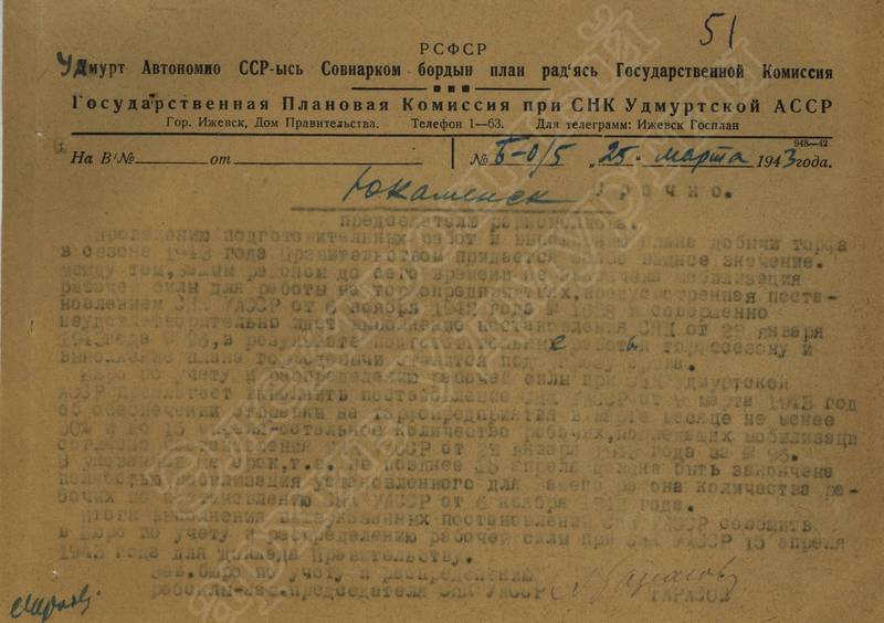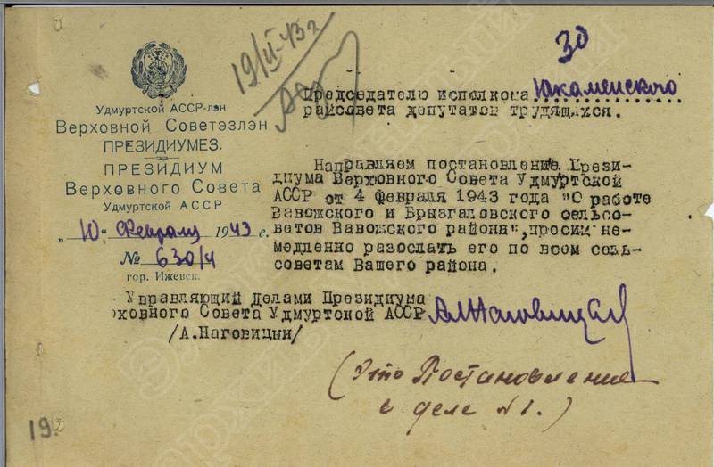Переписка с Президиумом Верховного Совета УАССР, с Совнаркомом УАССР