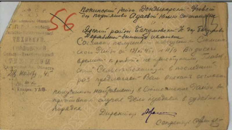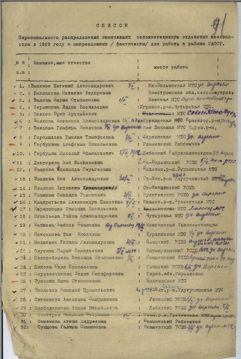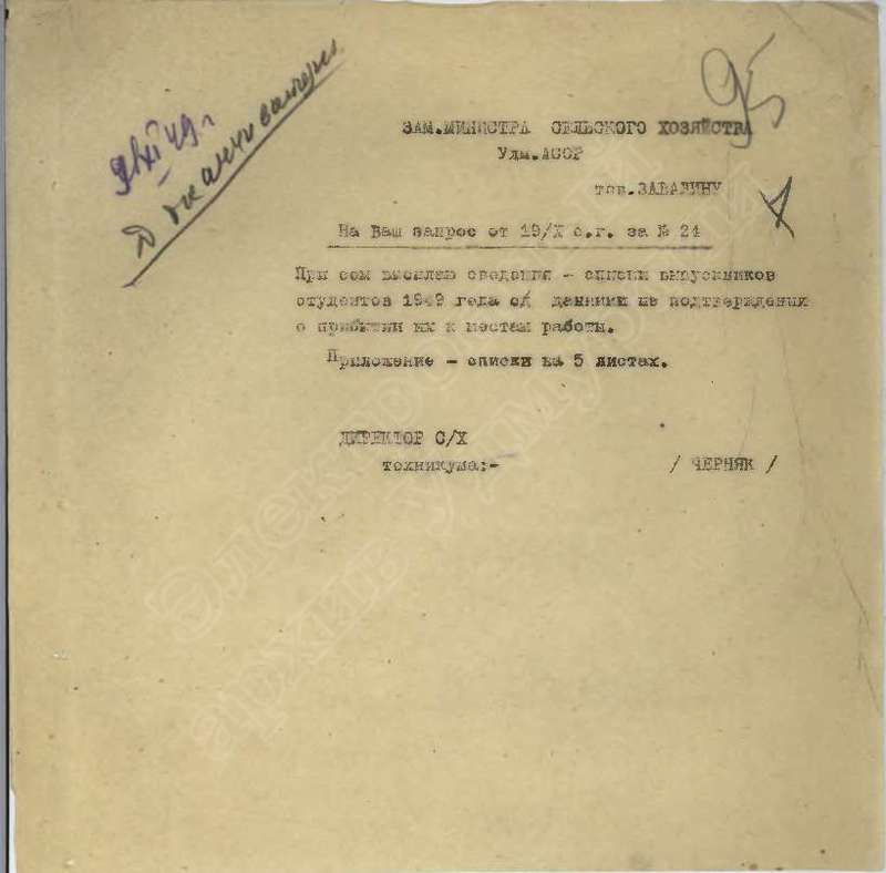 Планы распределения молодых специалистов по районам и колхозам за 1945-1948 гг.