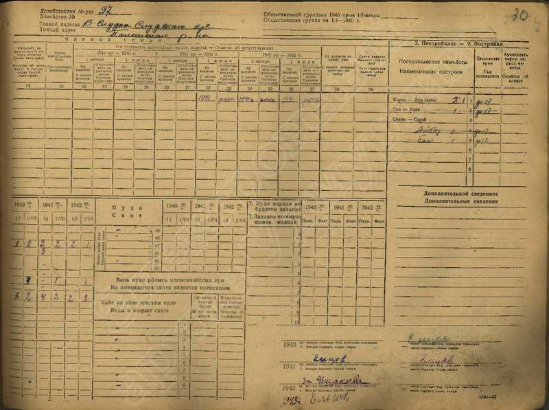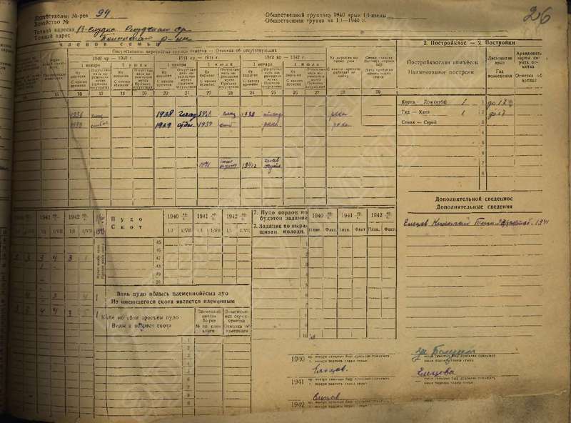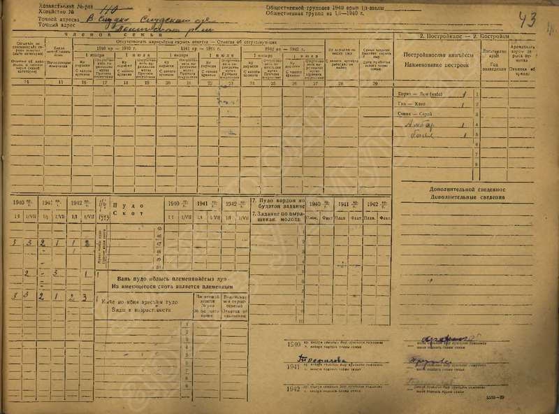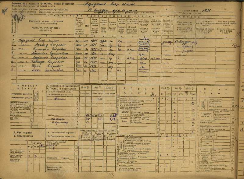 Похозяйственная книга дер. В-Слудка за 1940-1942 годы