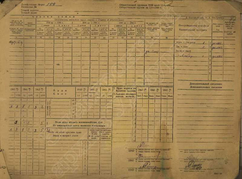 Похозяйственная книга дер. Н-Слудка, У-Пышкец за 1940-1942 годы