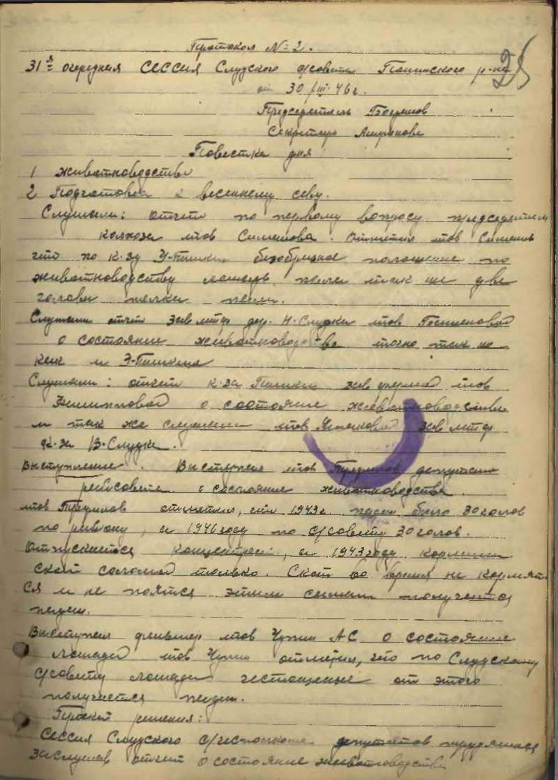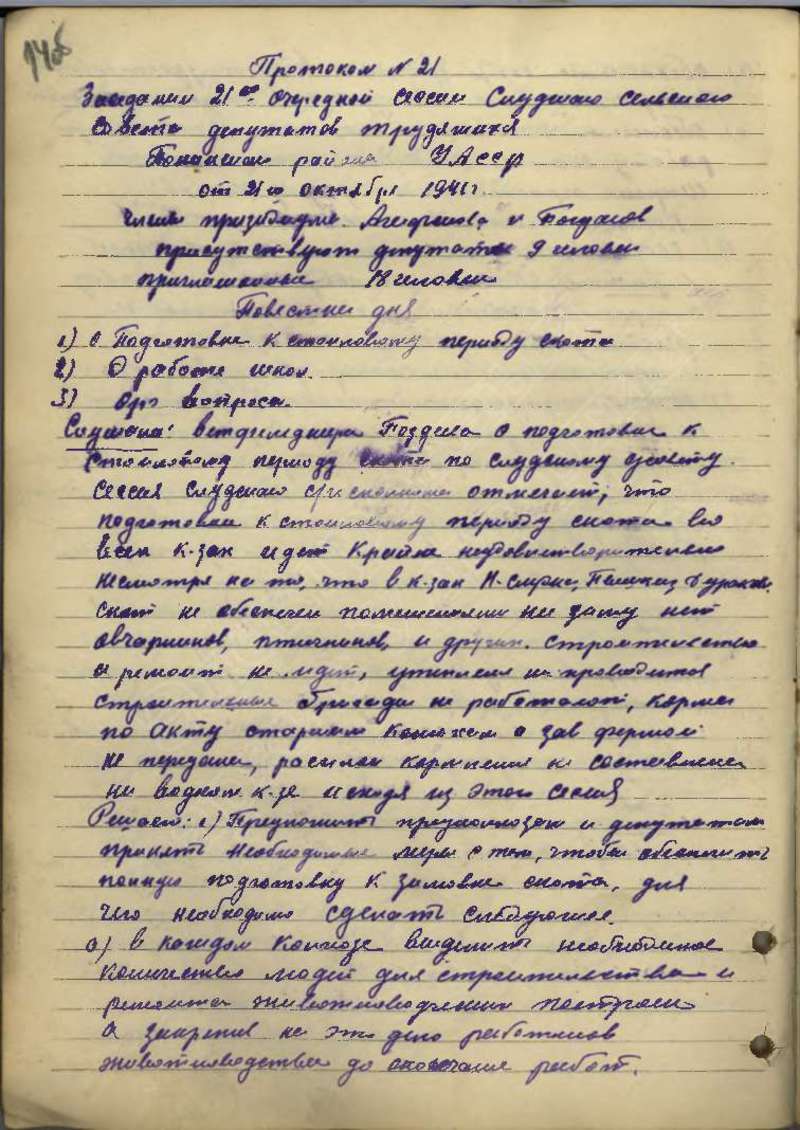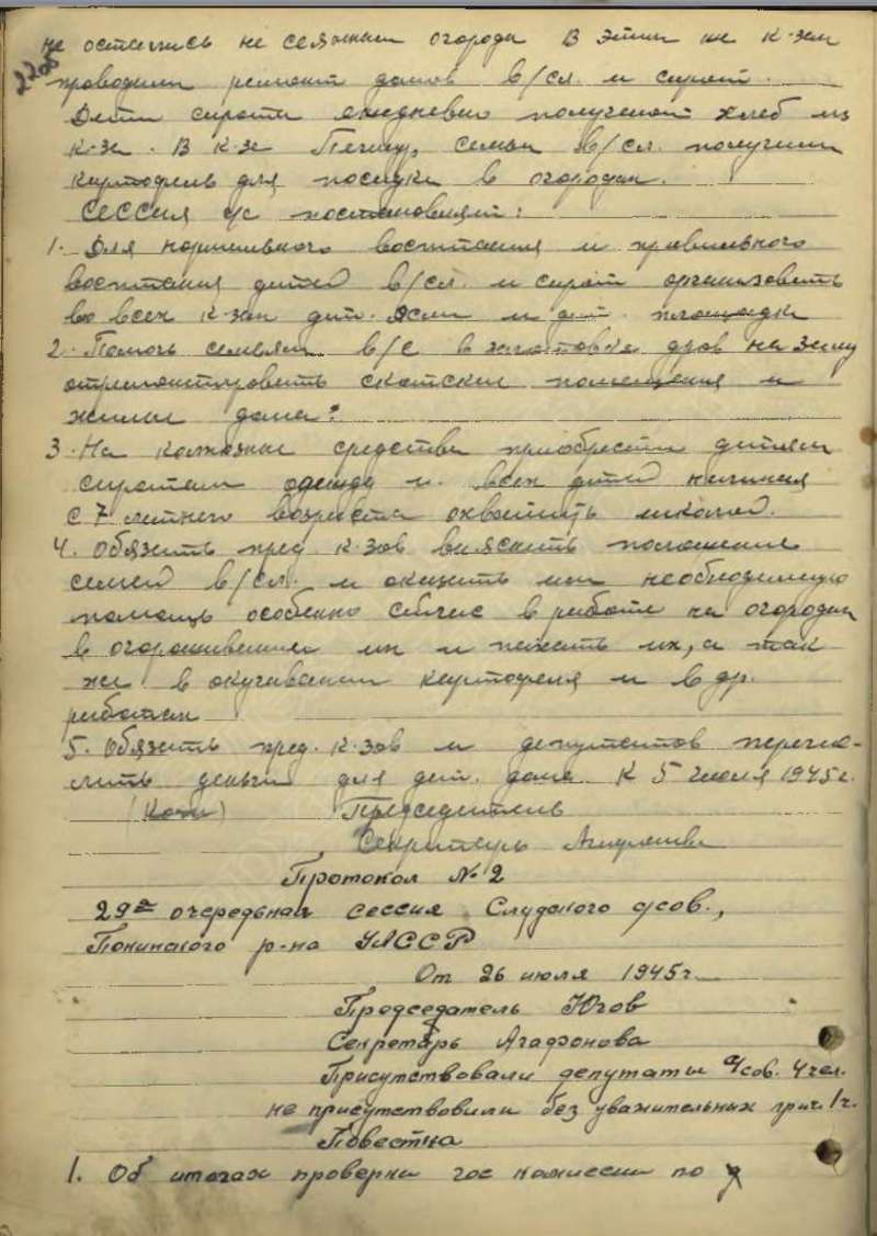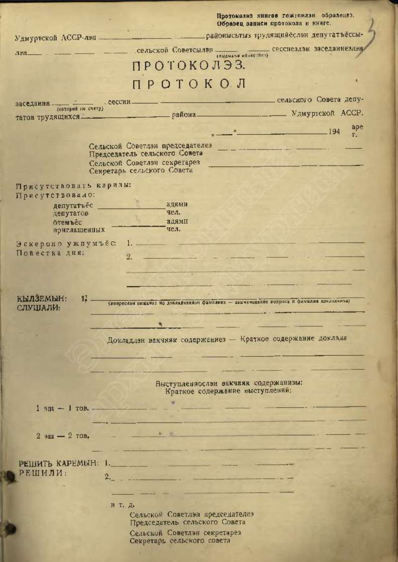 Протоколы сессий сельского Совета