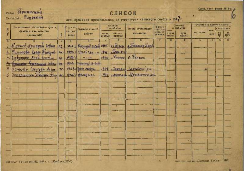 Список временно и постоянно проживающих рабочих и служащих за 1942-1951 годы