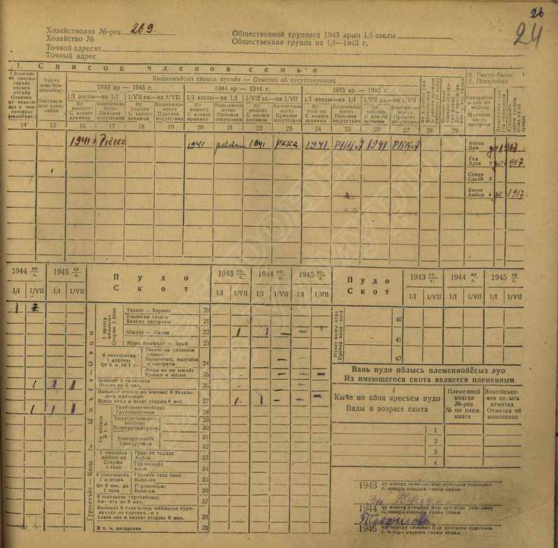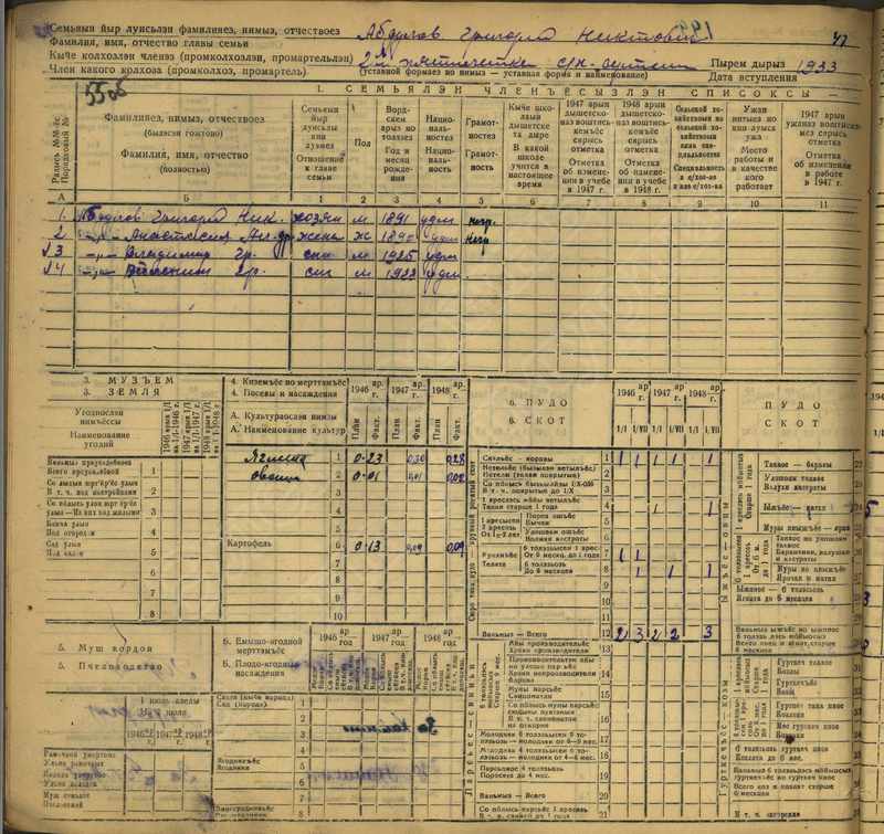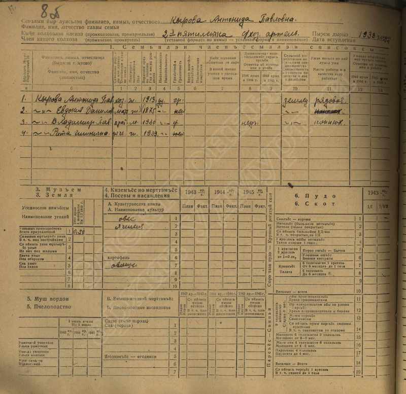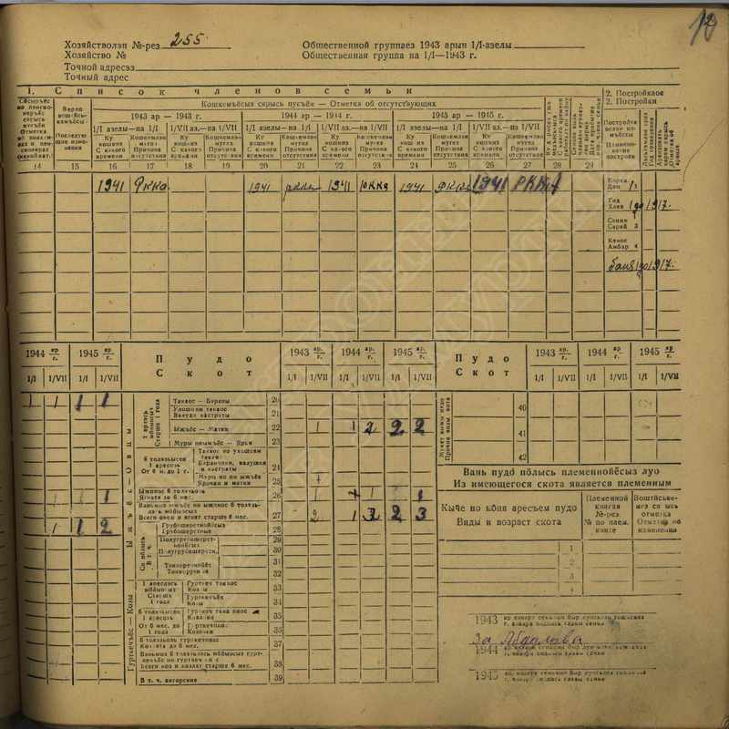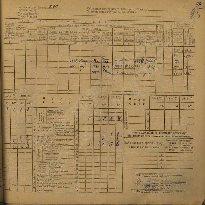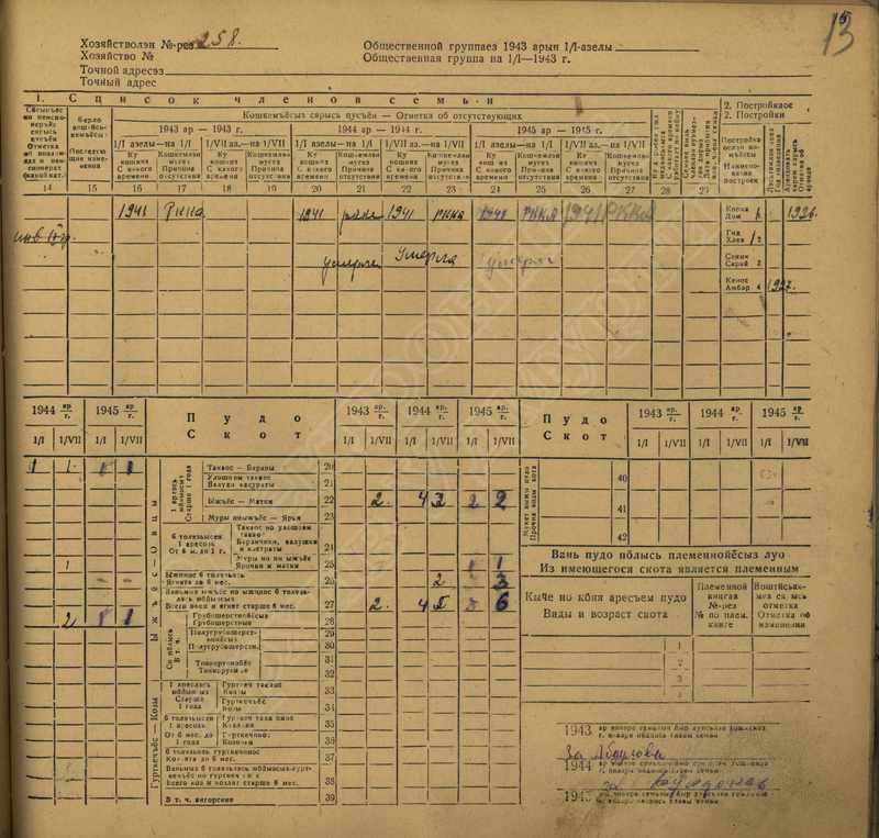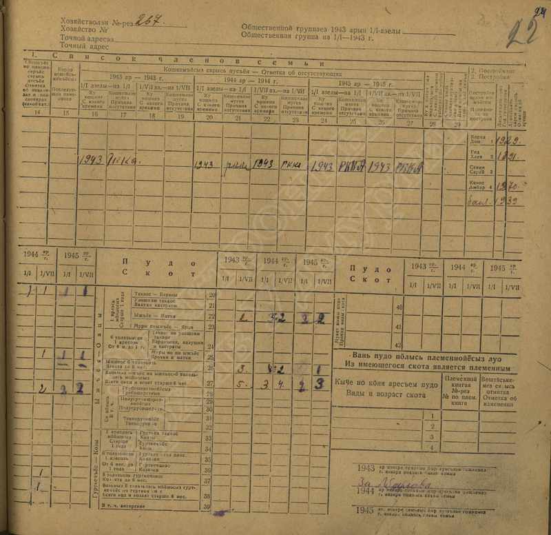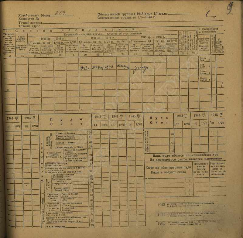 Похозяйственная книга дер. Дураково за 1943-1945, 1946-1948 годы