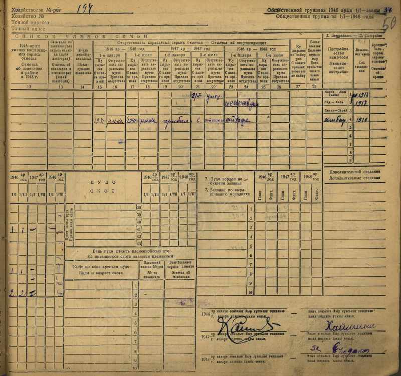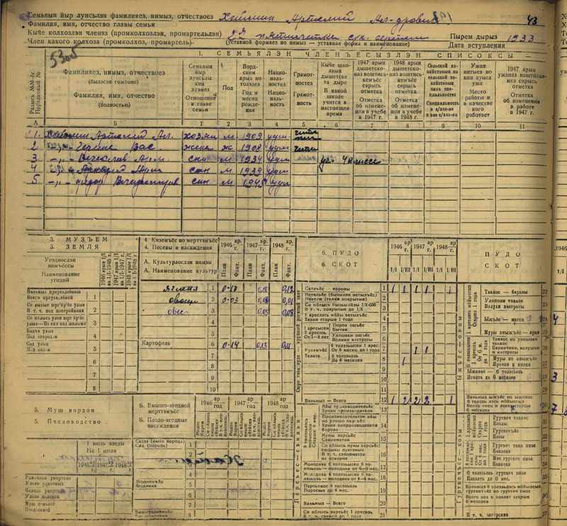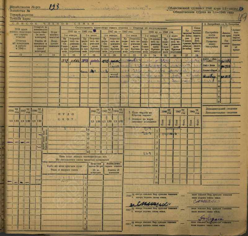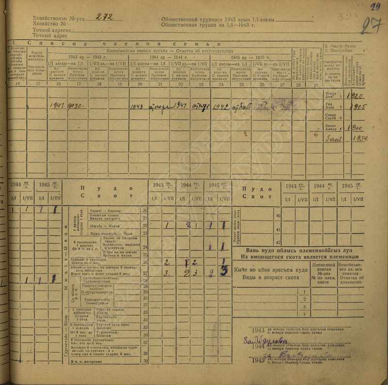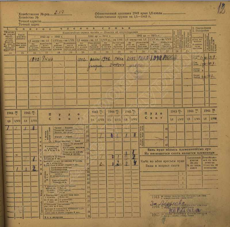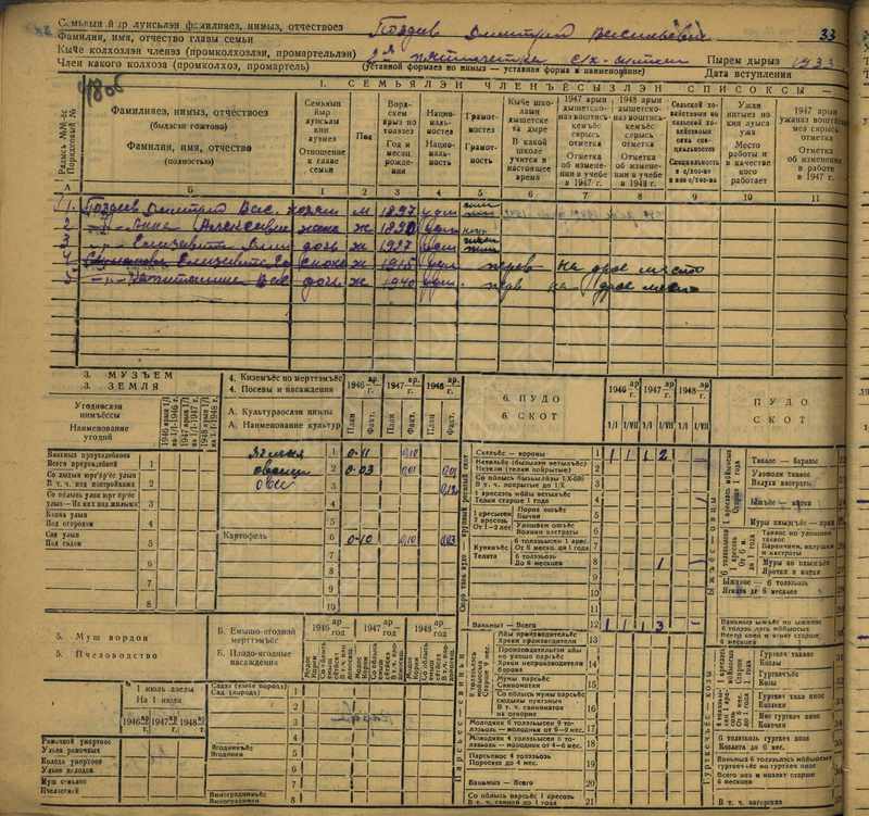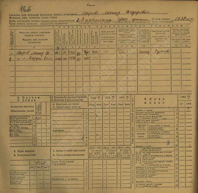 Похозяйственная книга дер. Дураково за 1943-1945, 1946-1948 годы