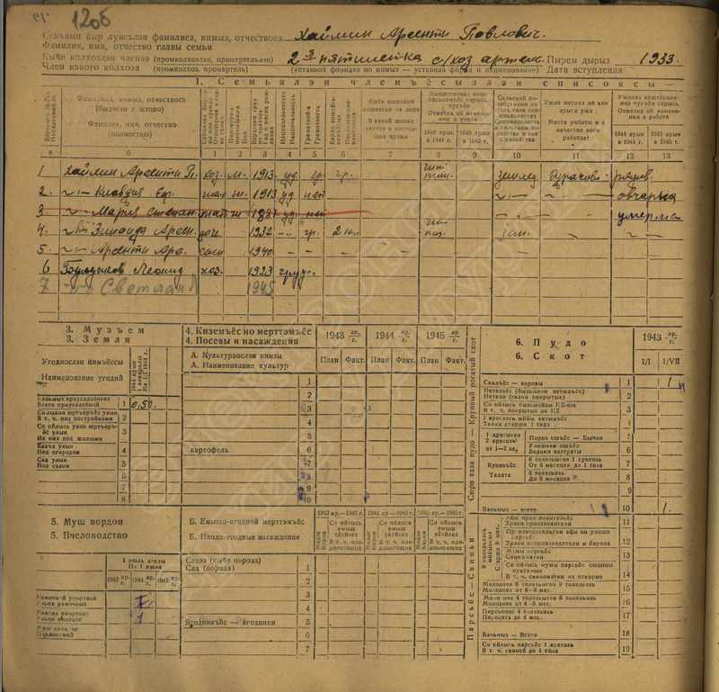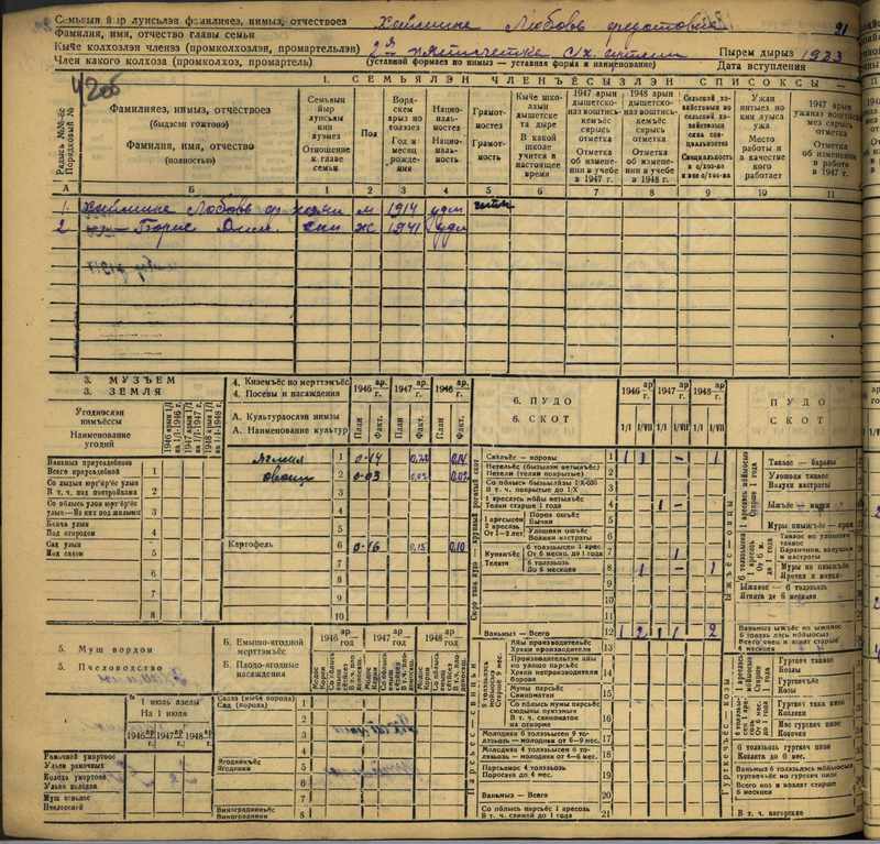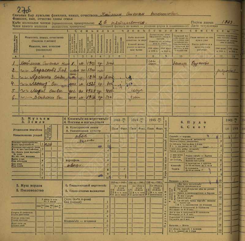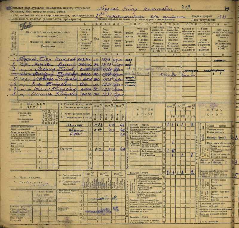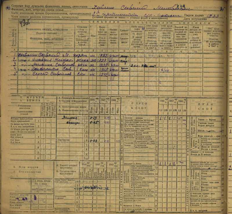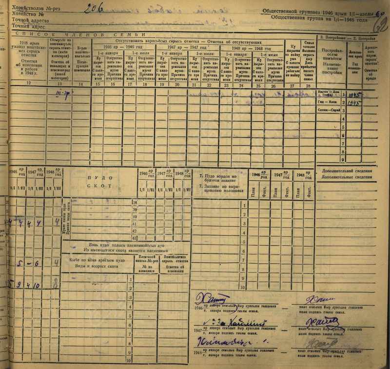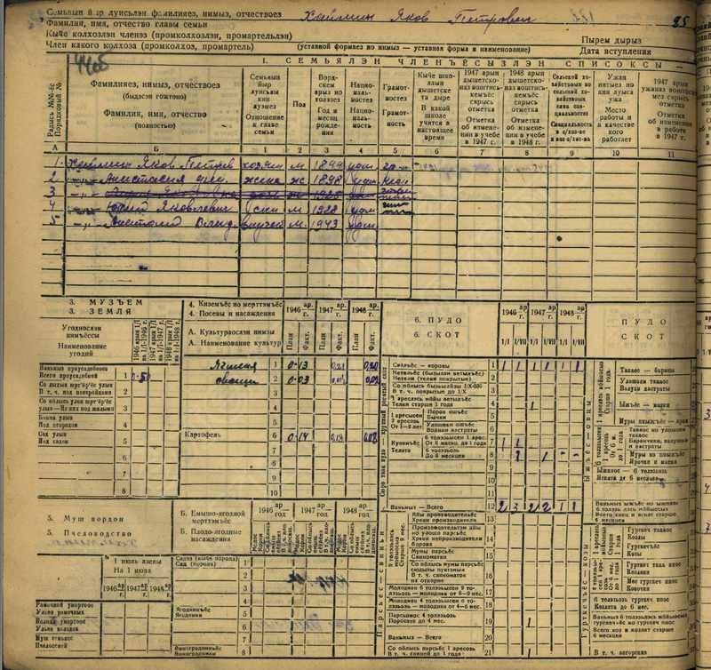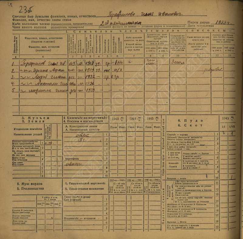 Похозяйственная книга дер. Дураково за 1943-1945, 1946-1948 годы