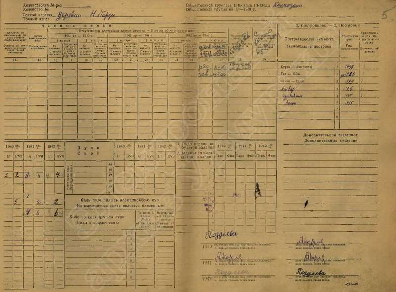 Похозяйственная книга дер.Н-Парзи за I940-I942 годы