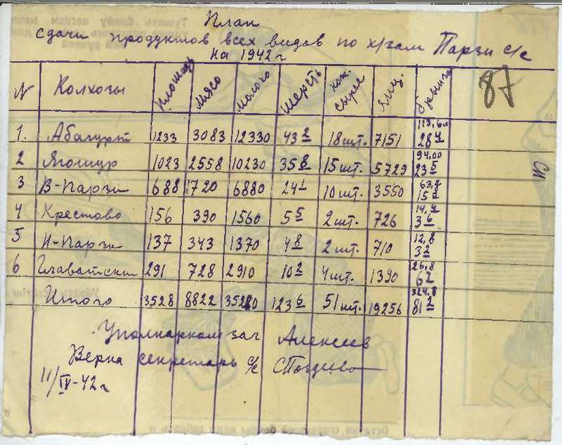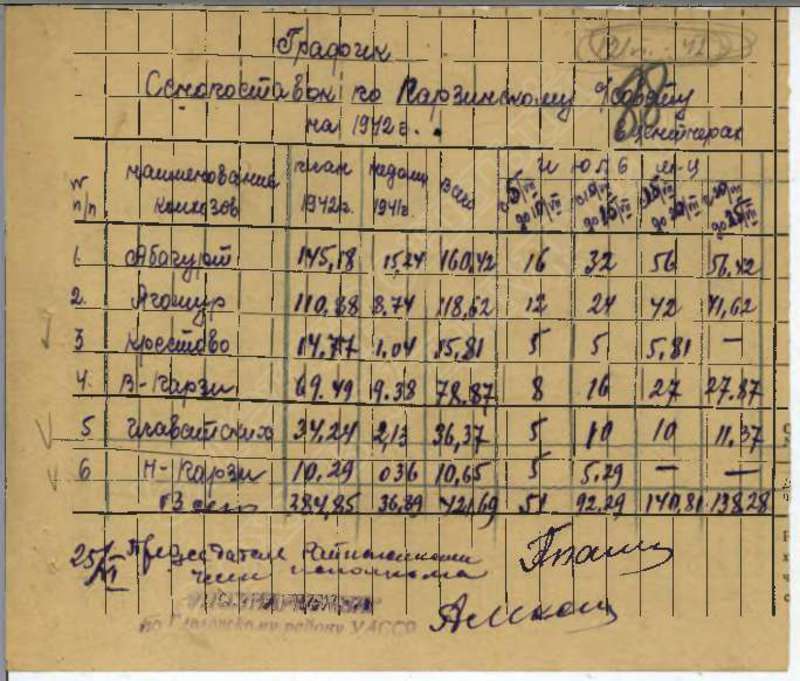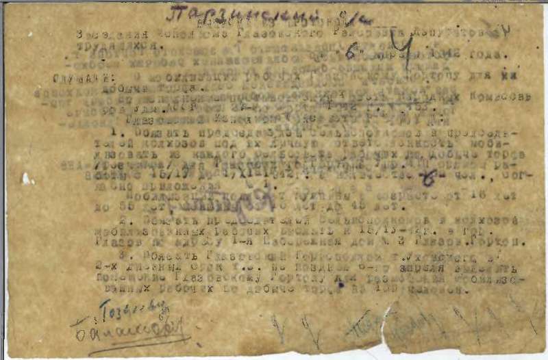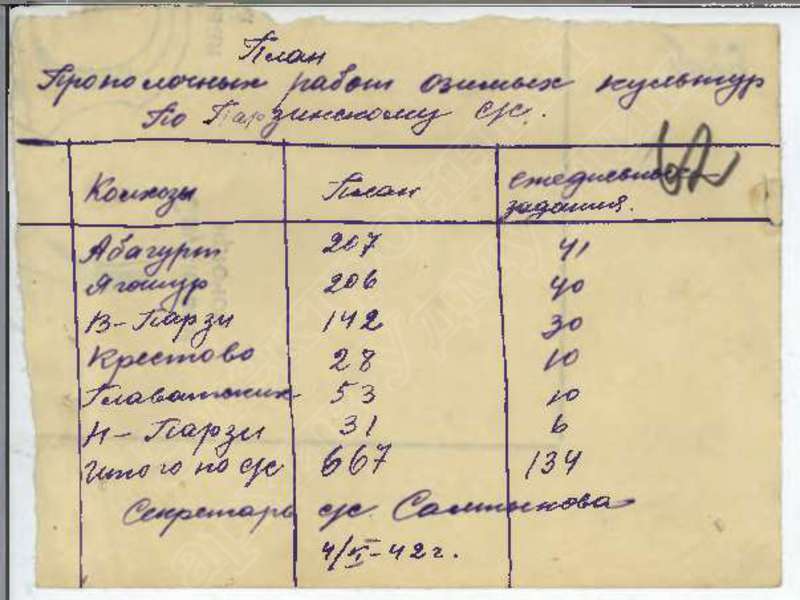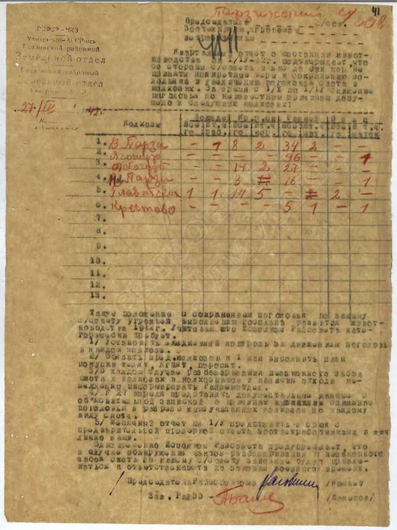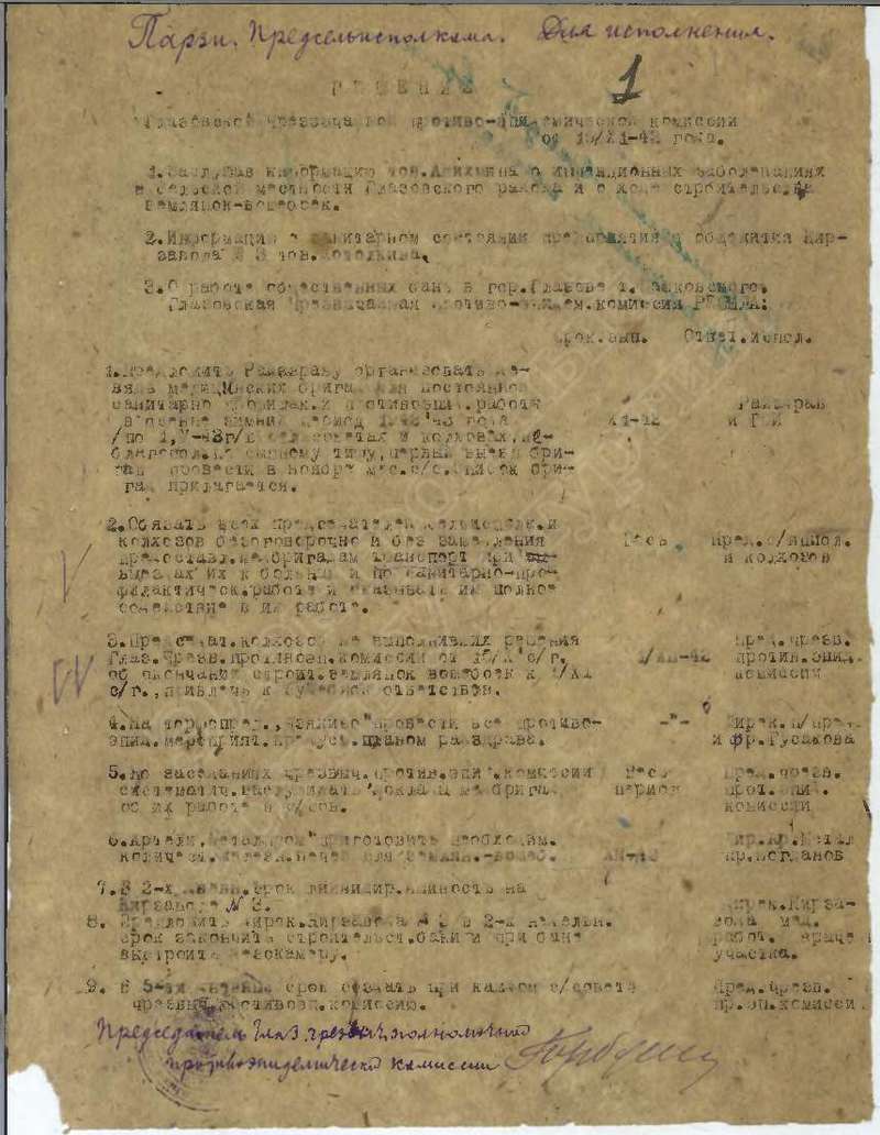 Решения исполкома Глазовского райсовета и планы сельхозработ на 1942 год