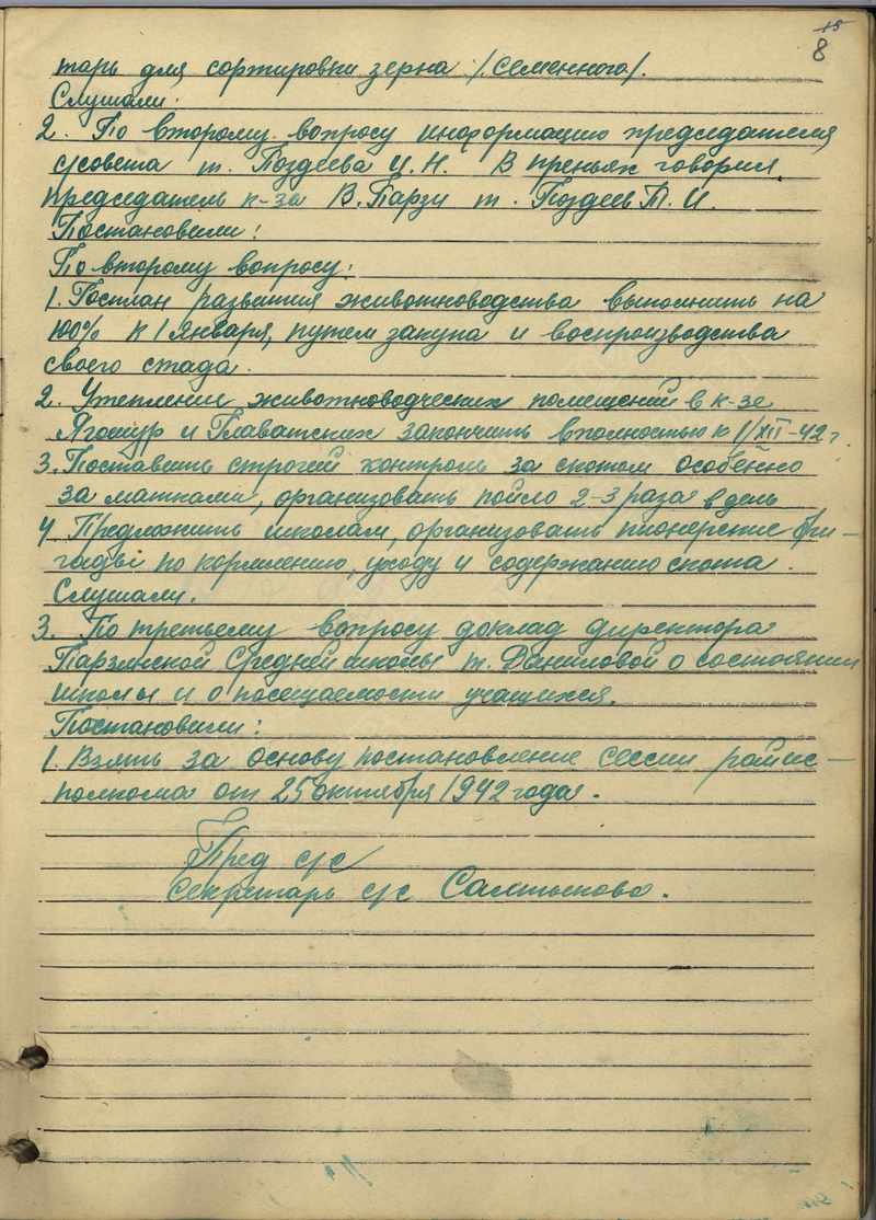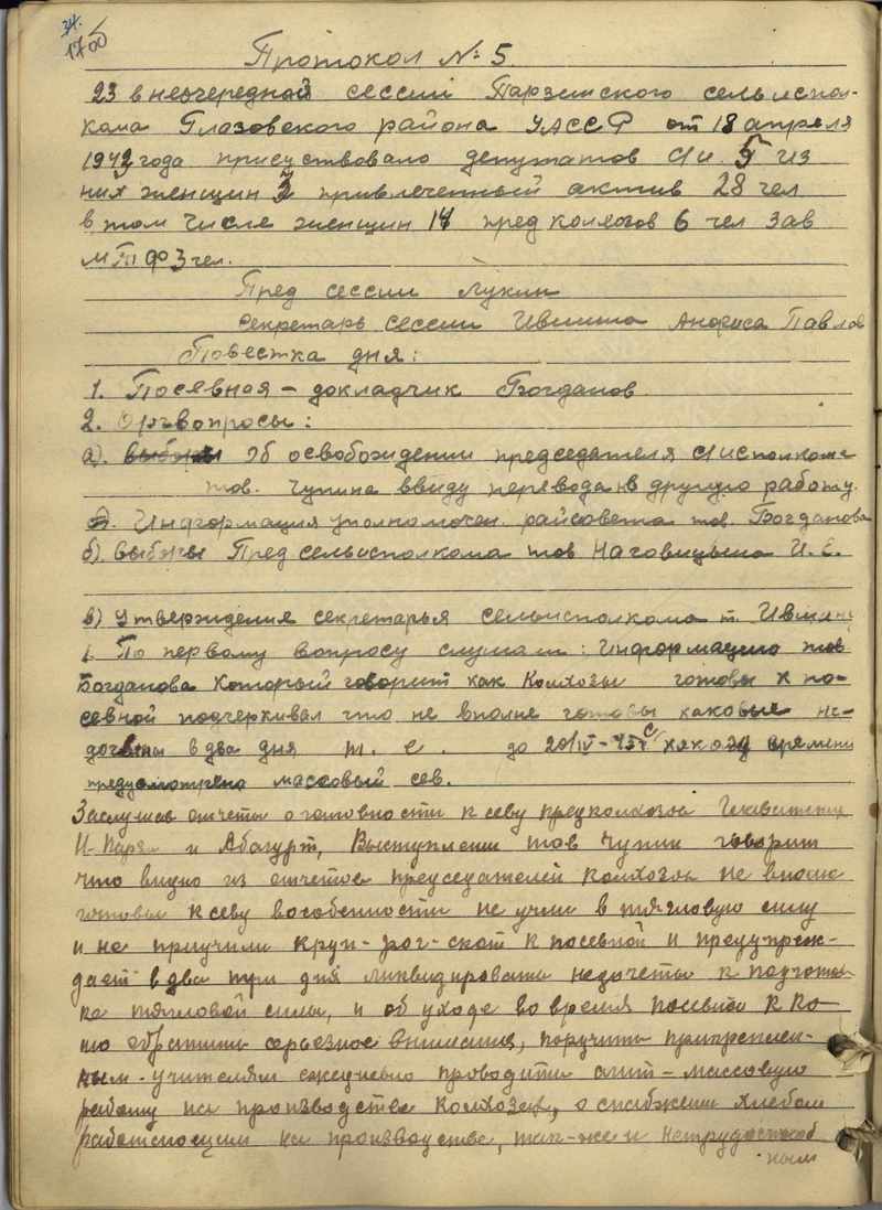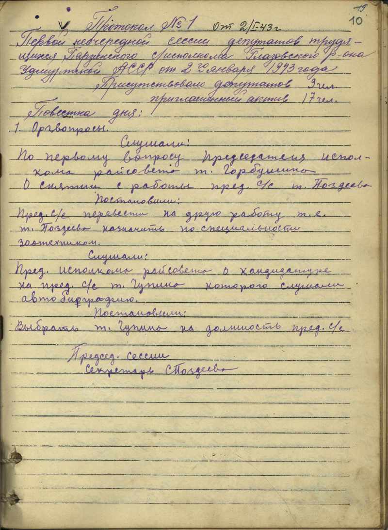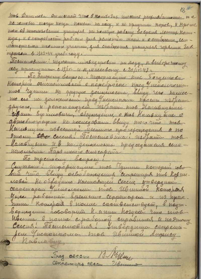Протоколы сессий сельского Совета