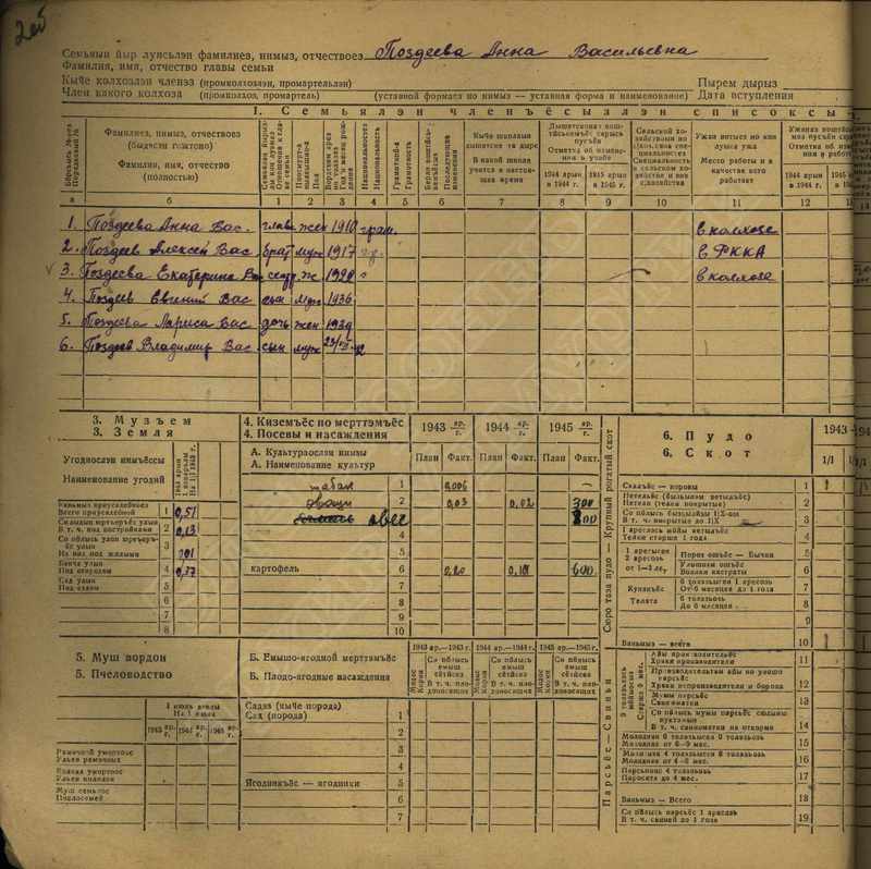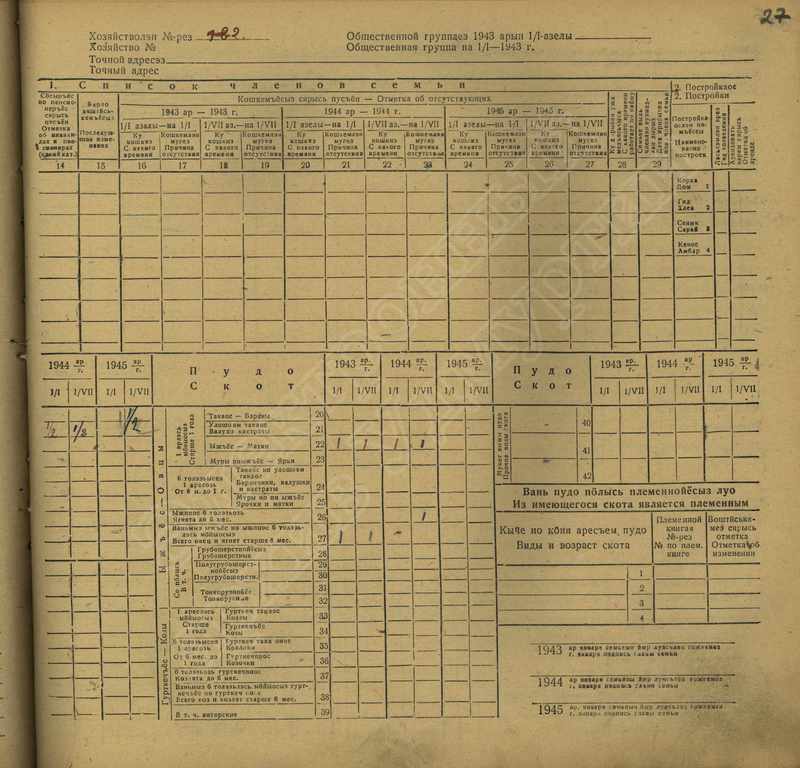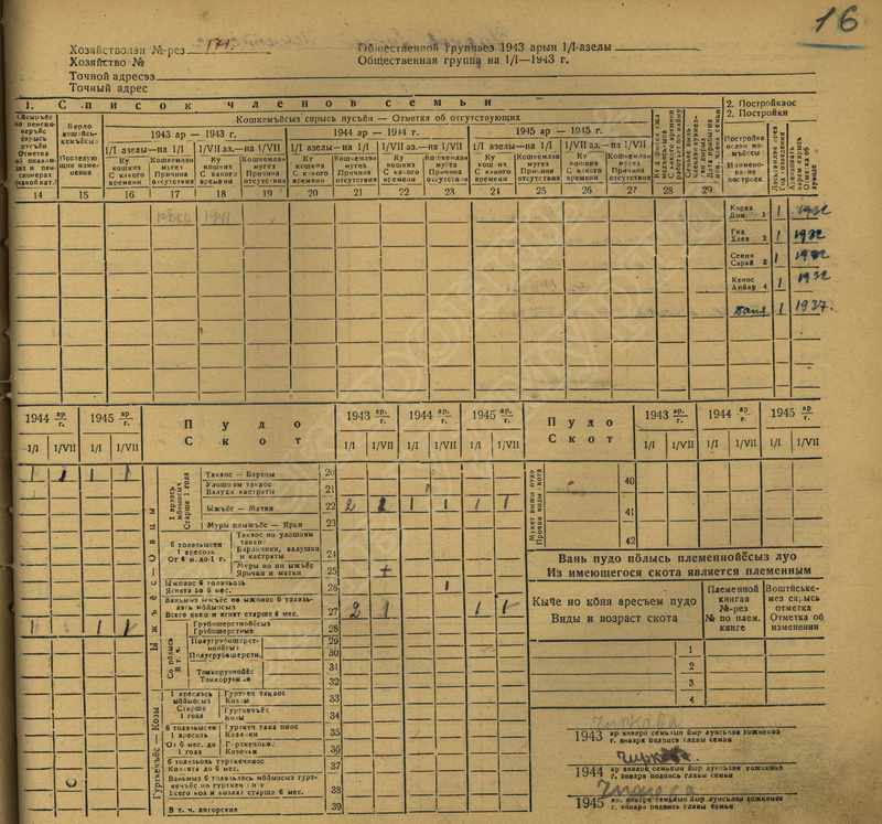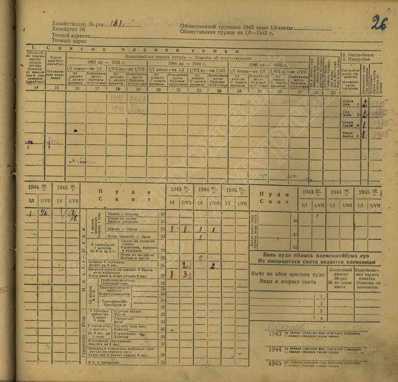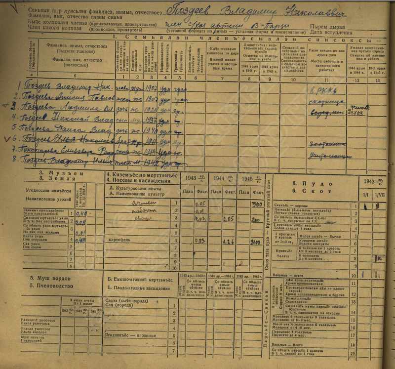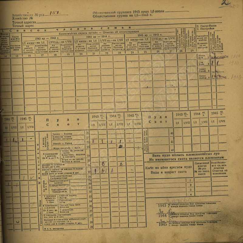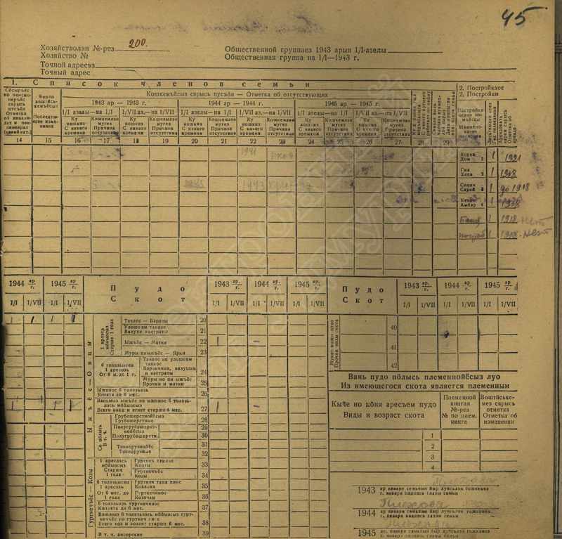Похозяйственная книга дер,В-Парзи за 1943-1945 годы