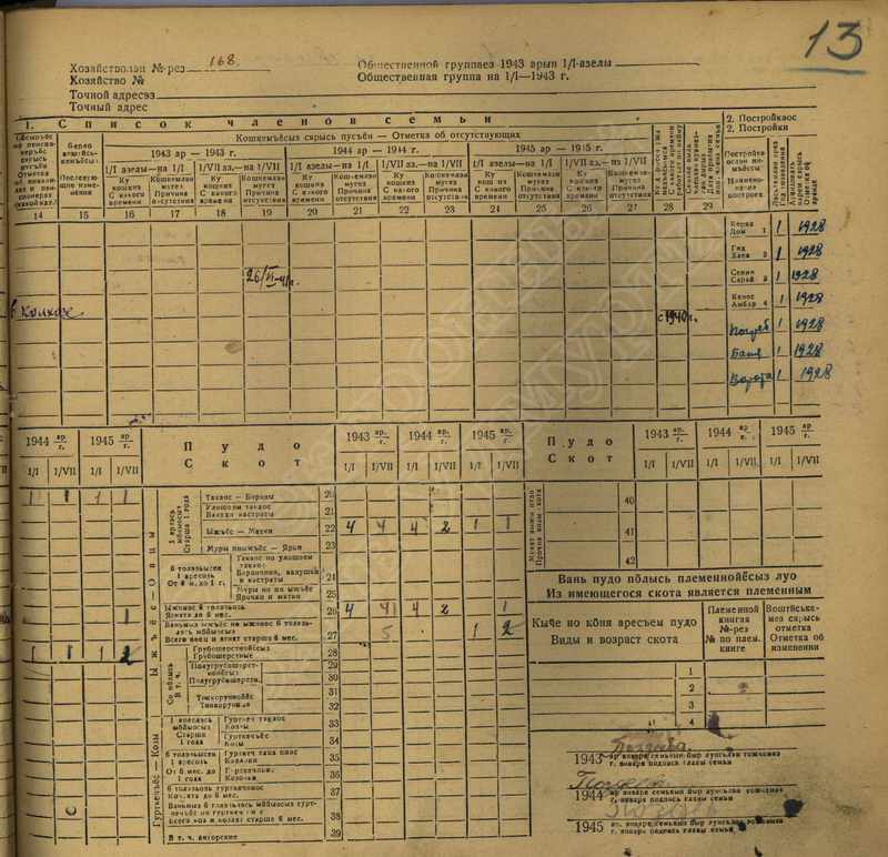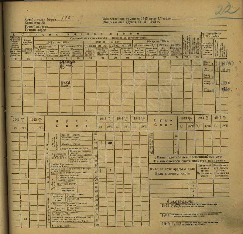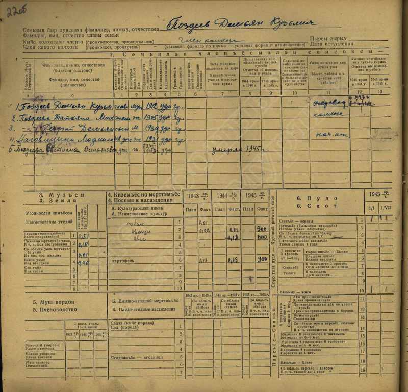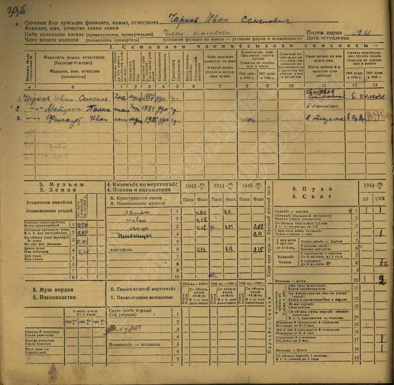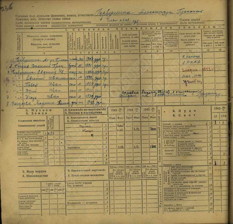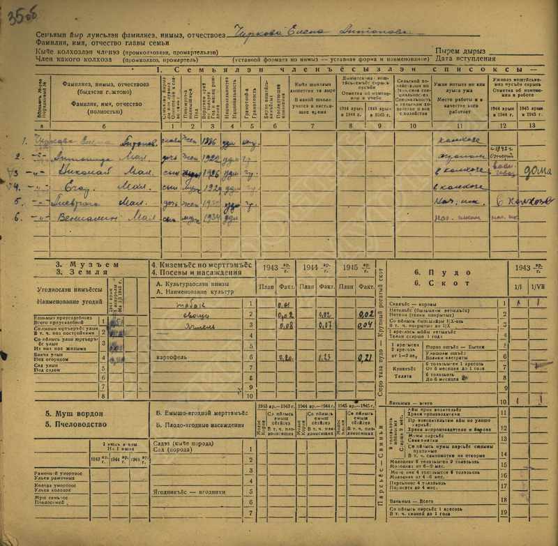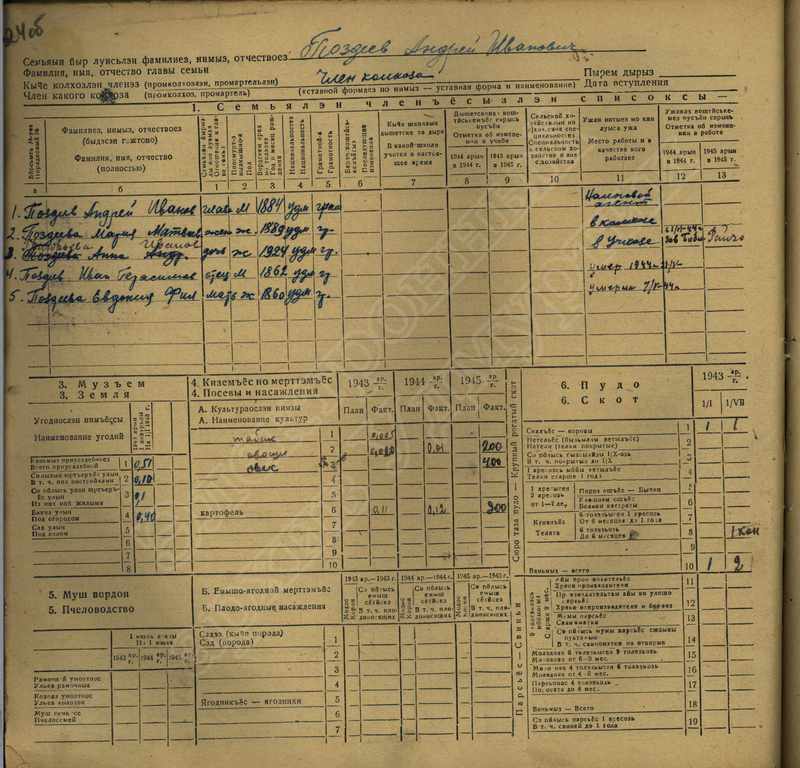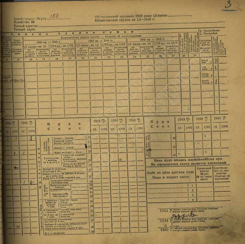 Похозяйственная книга дер,В-Парзи за 1943-1945 годы