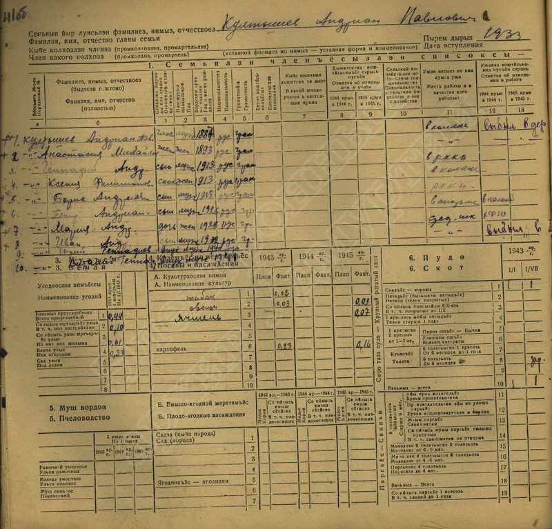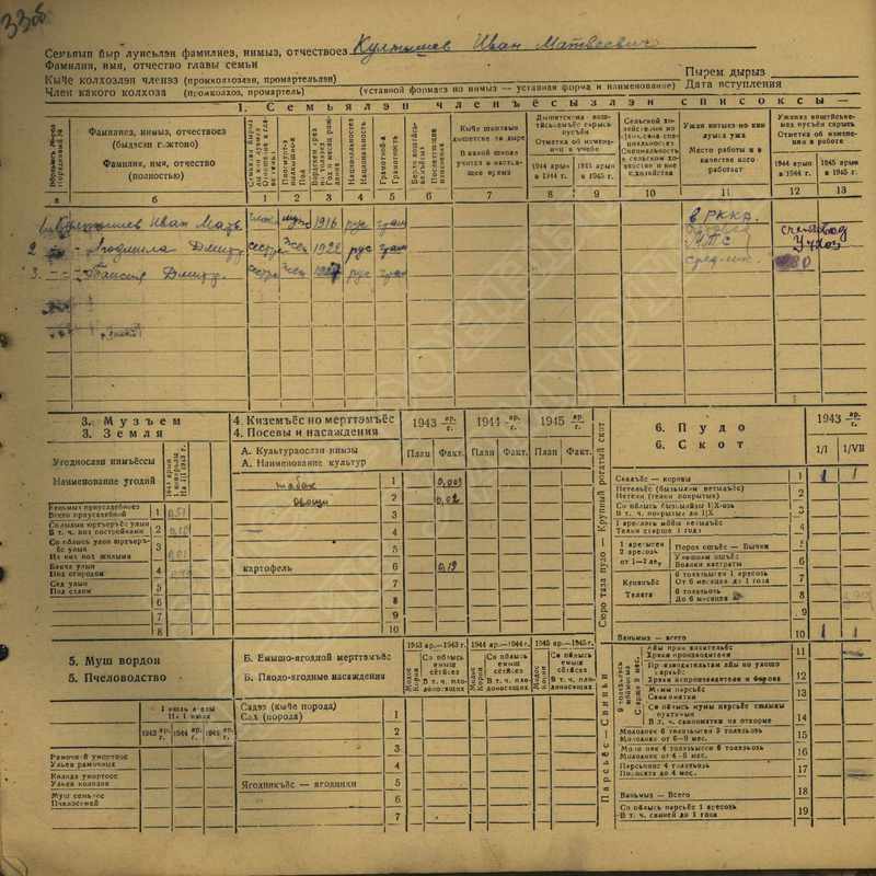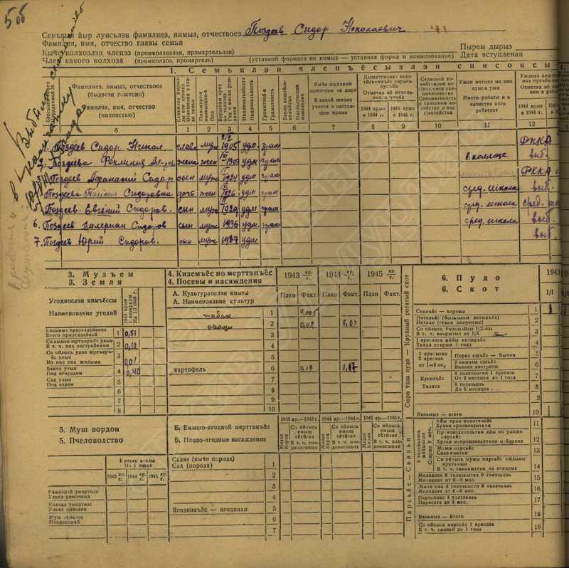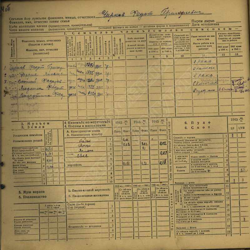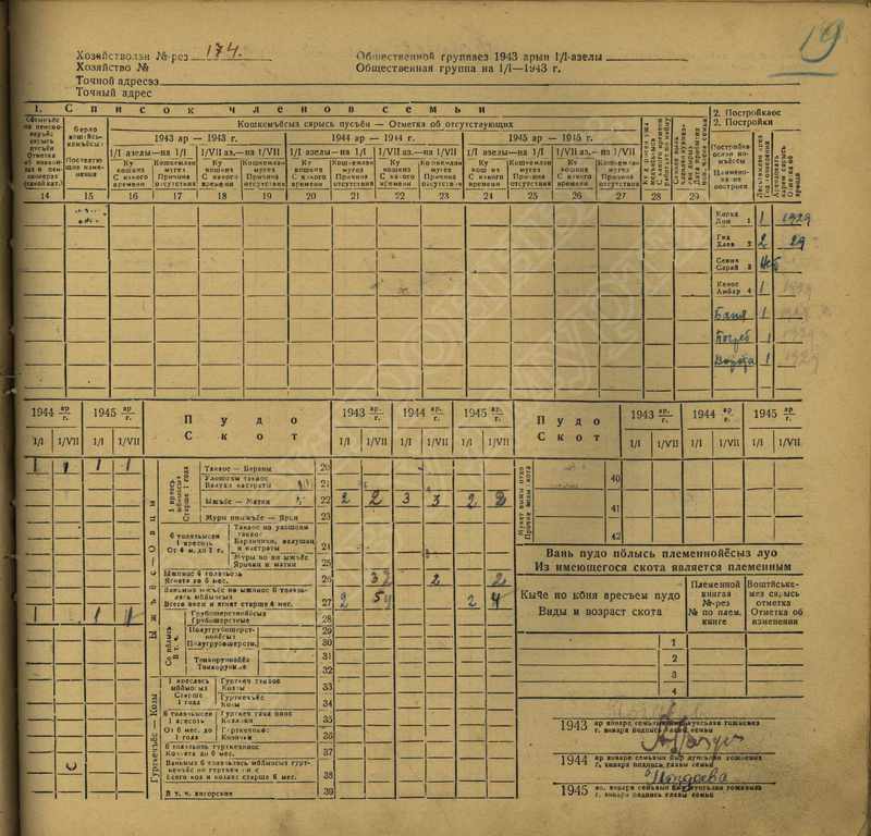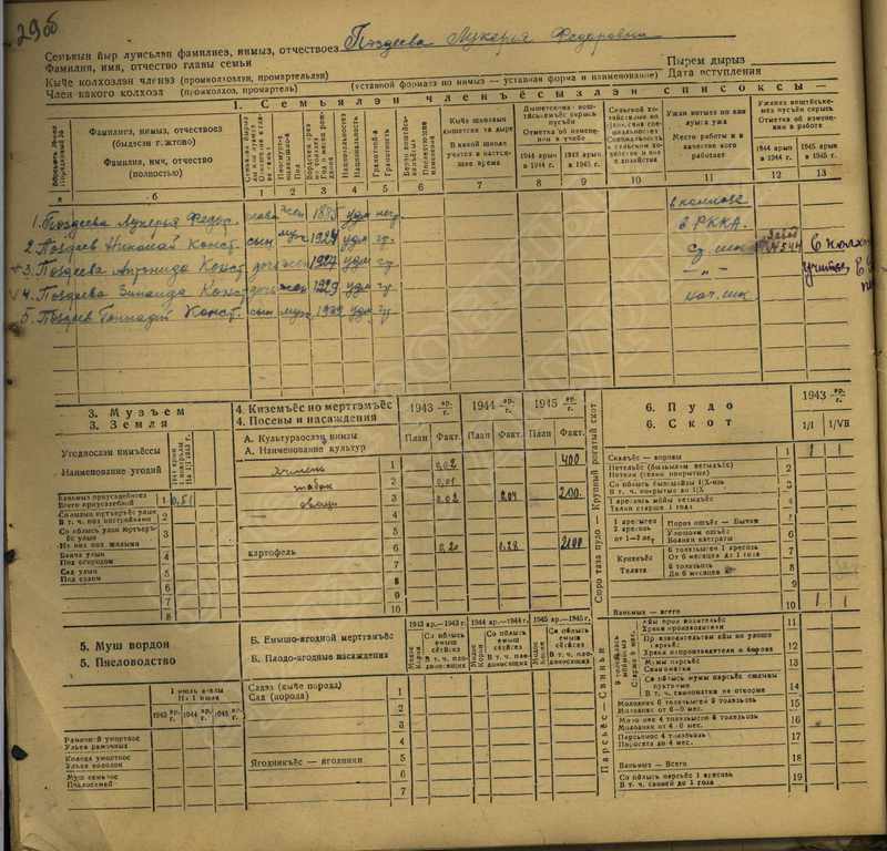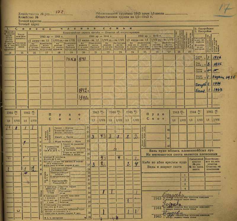 Похозяйственная книга дер,В-Парзи за 1943-1945 годы