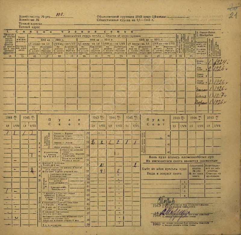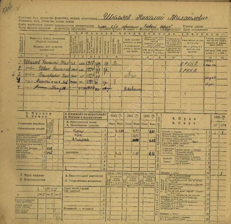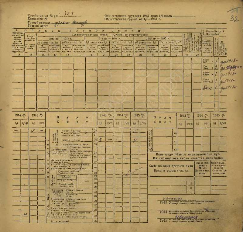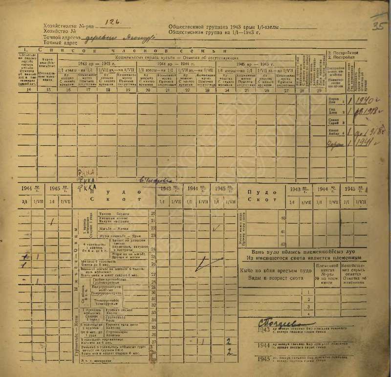 Похозяйственная книга дер.Ягошур за 1943-1945 годы