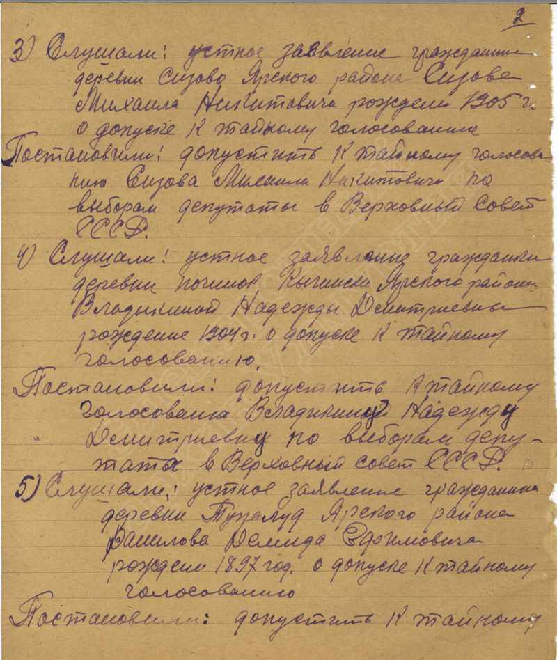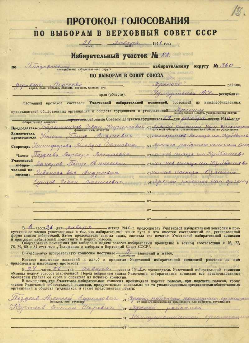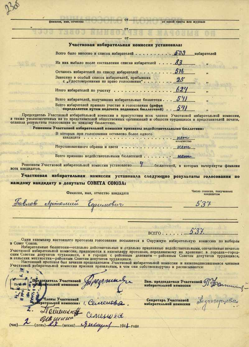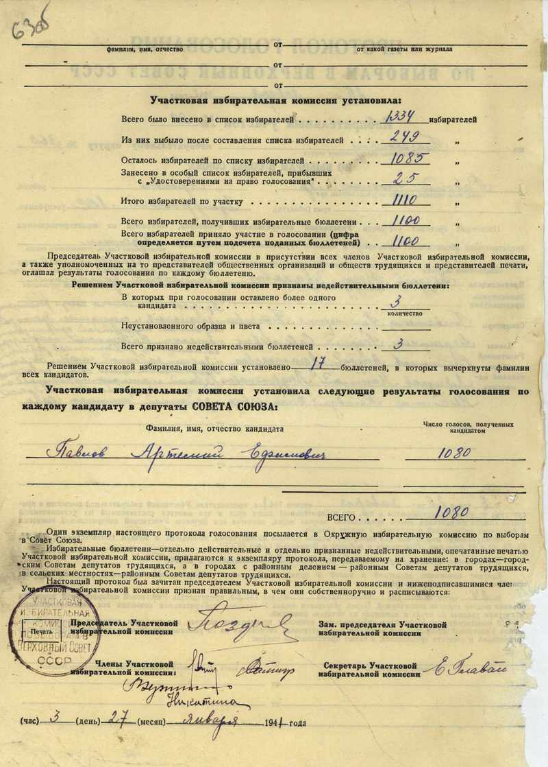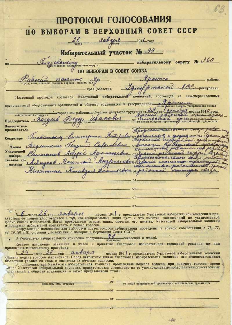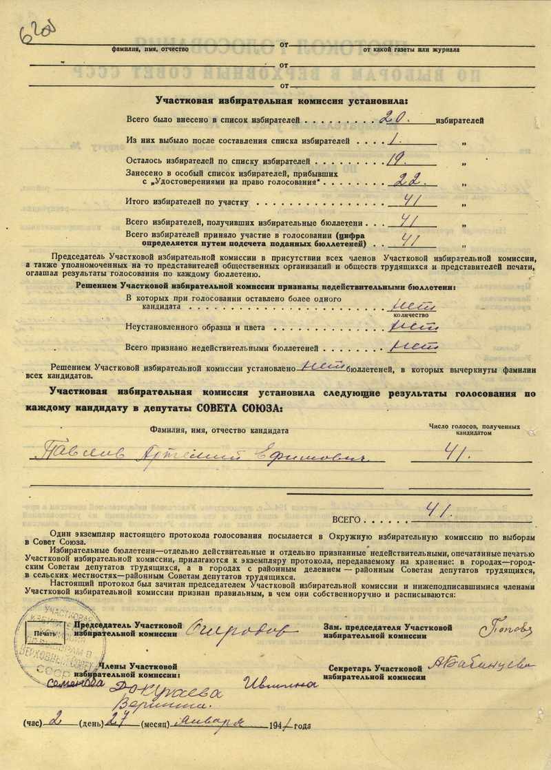 Протоколы голосования участковых избирательных комиссий по выборам в Верховный Совет СССР
