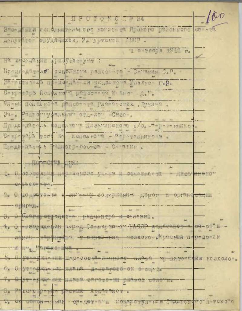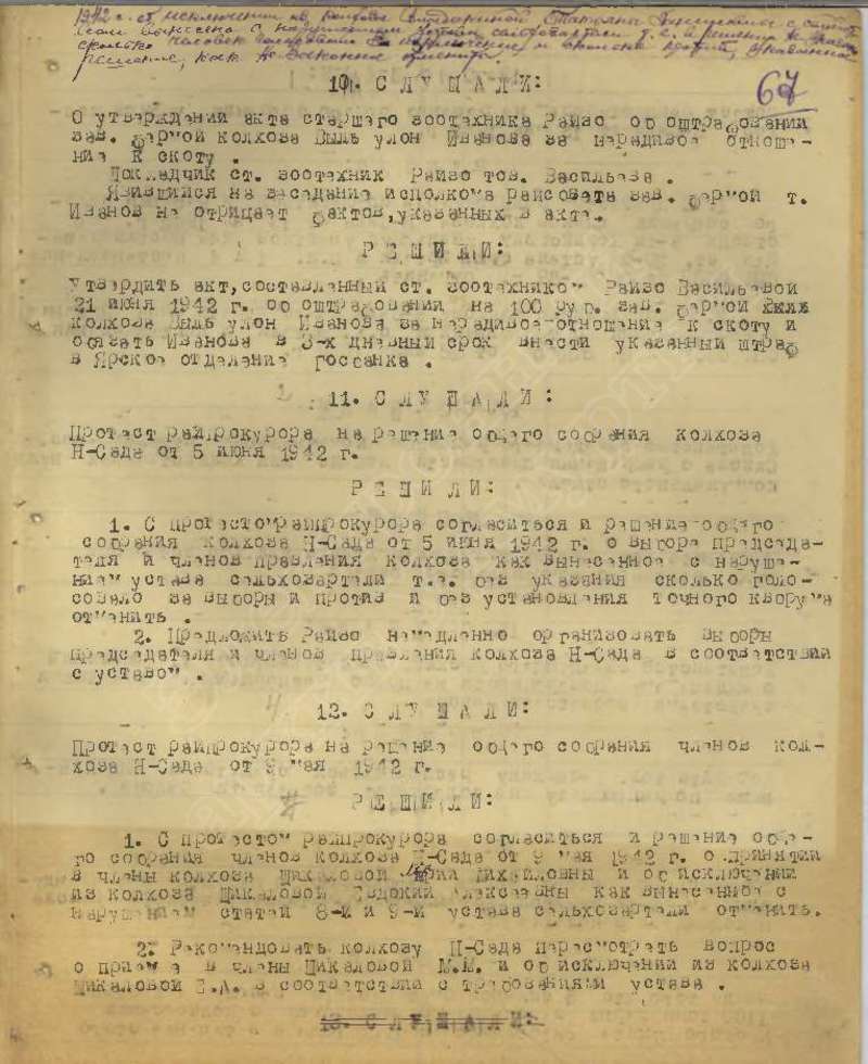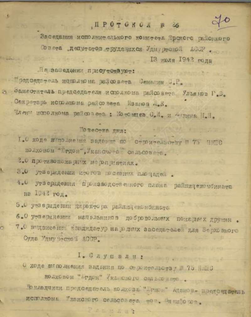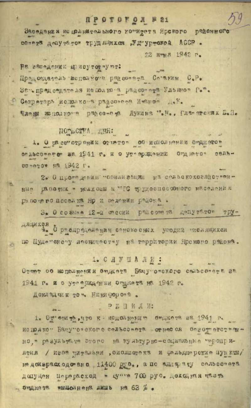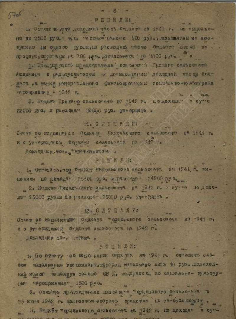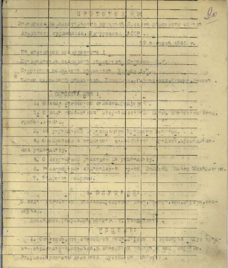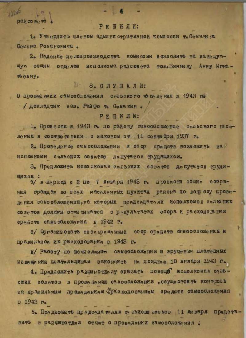 Протоколы заседаний исполкома райсовета