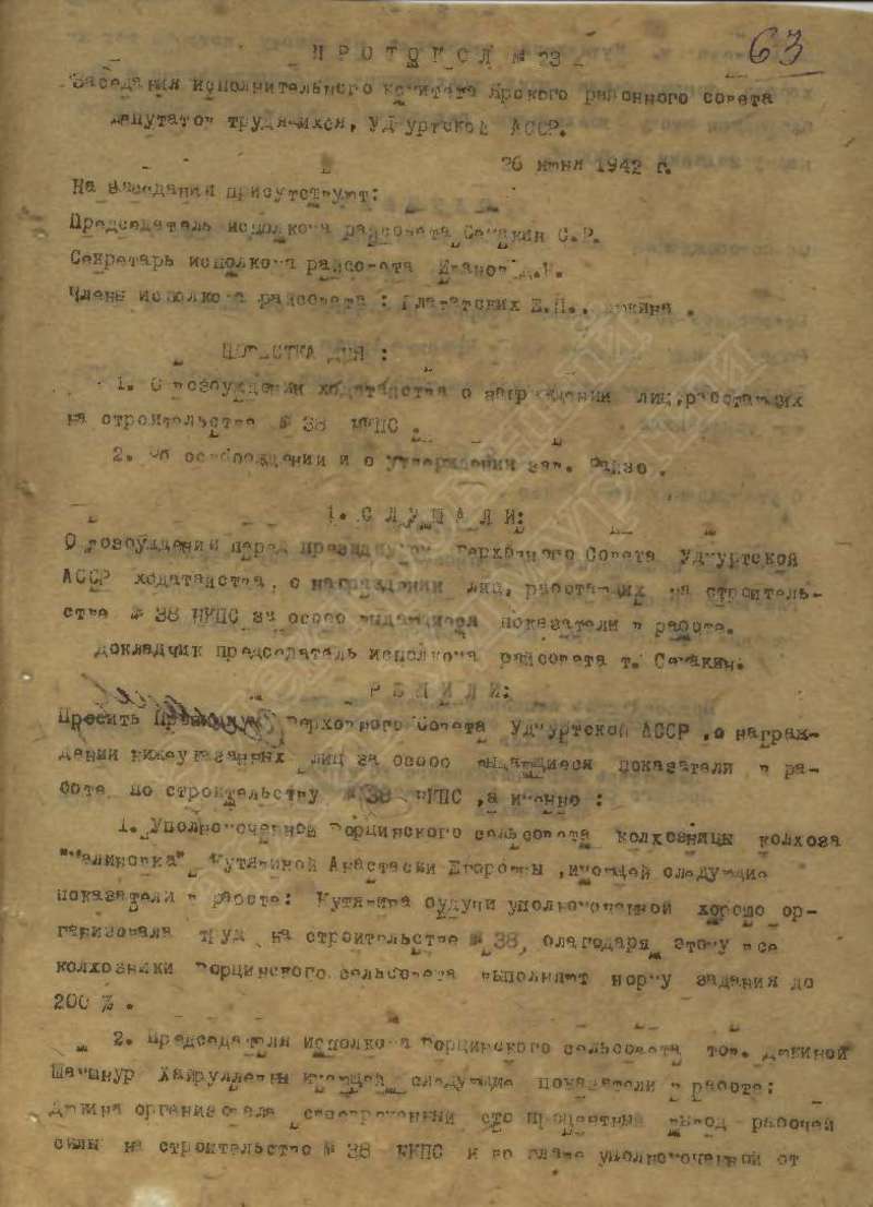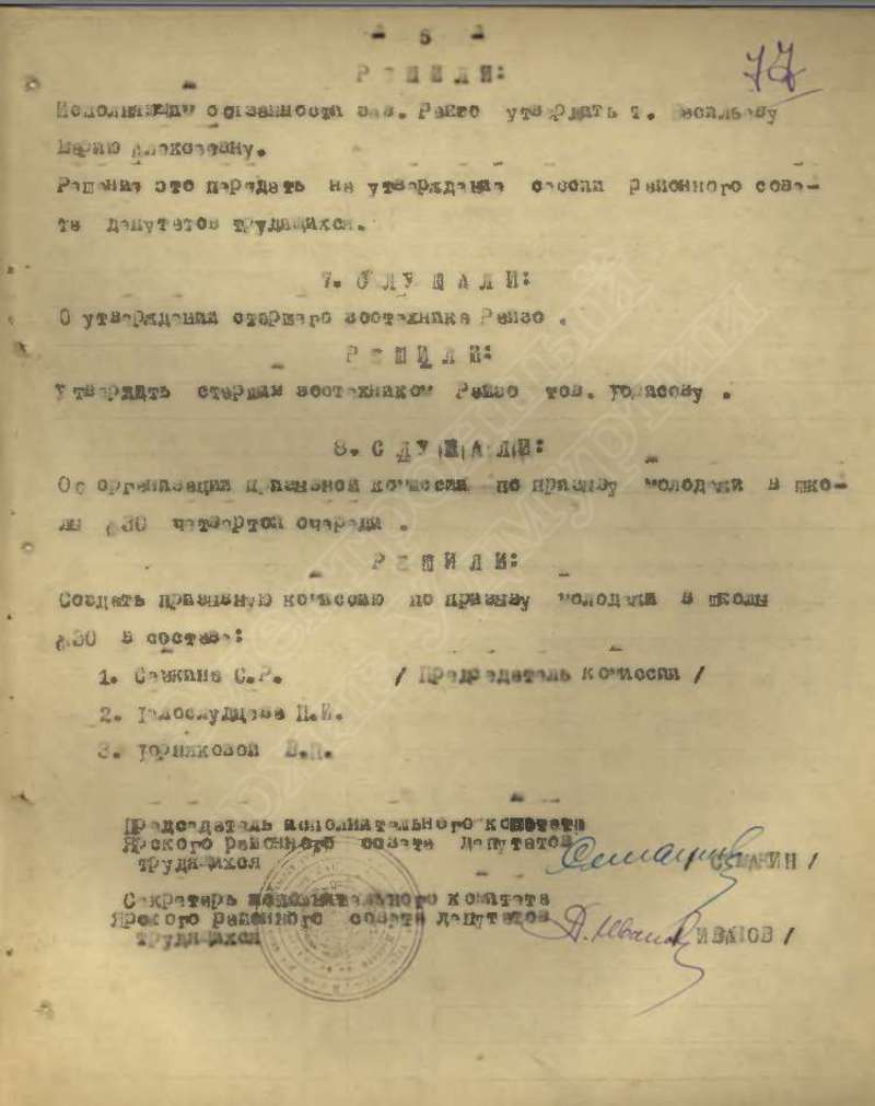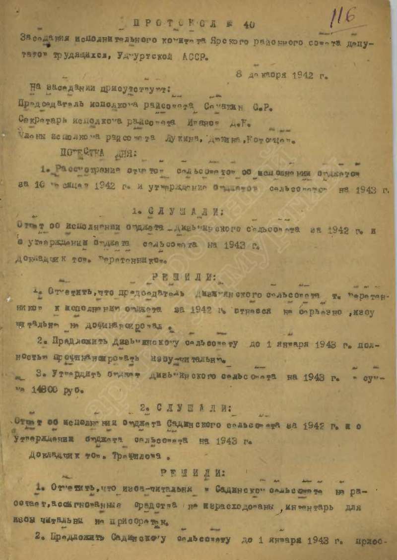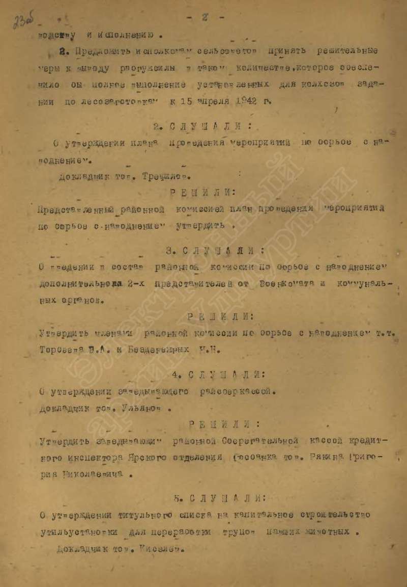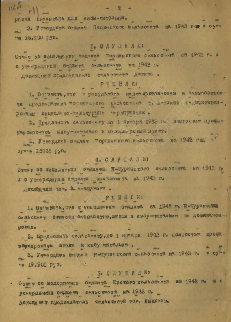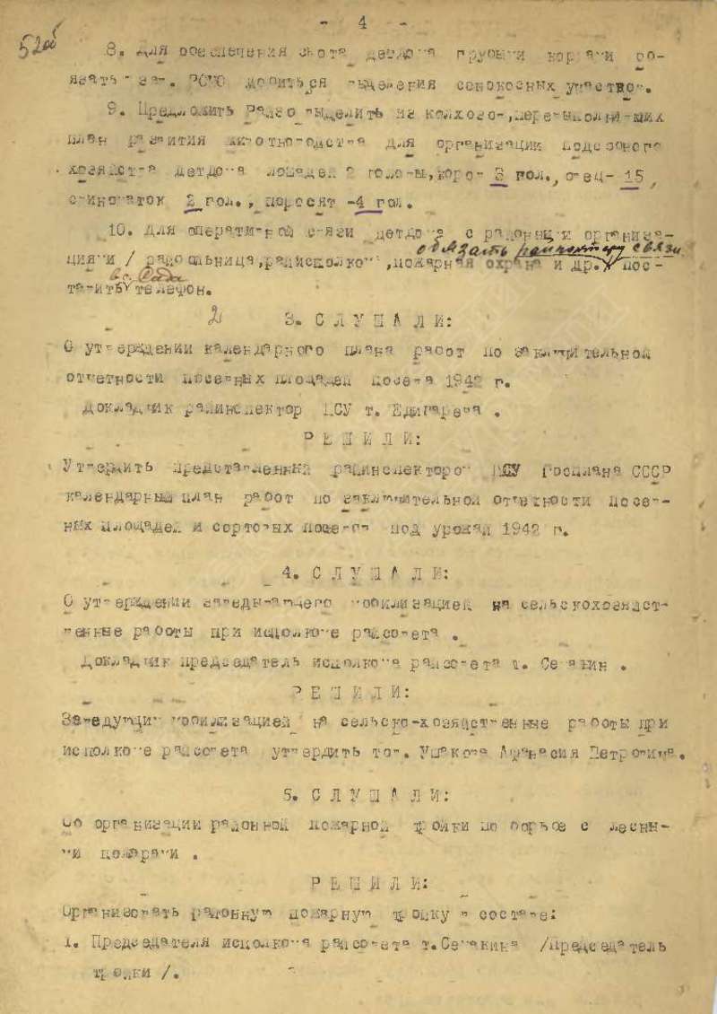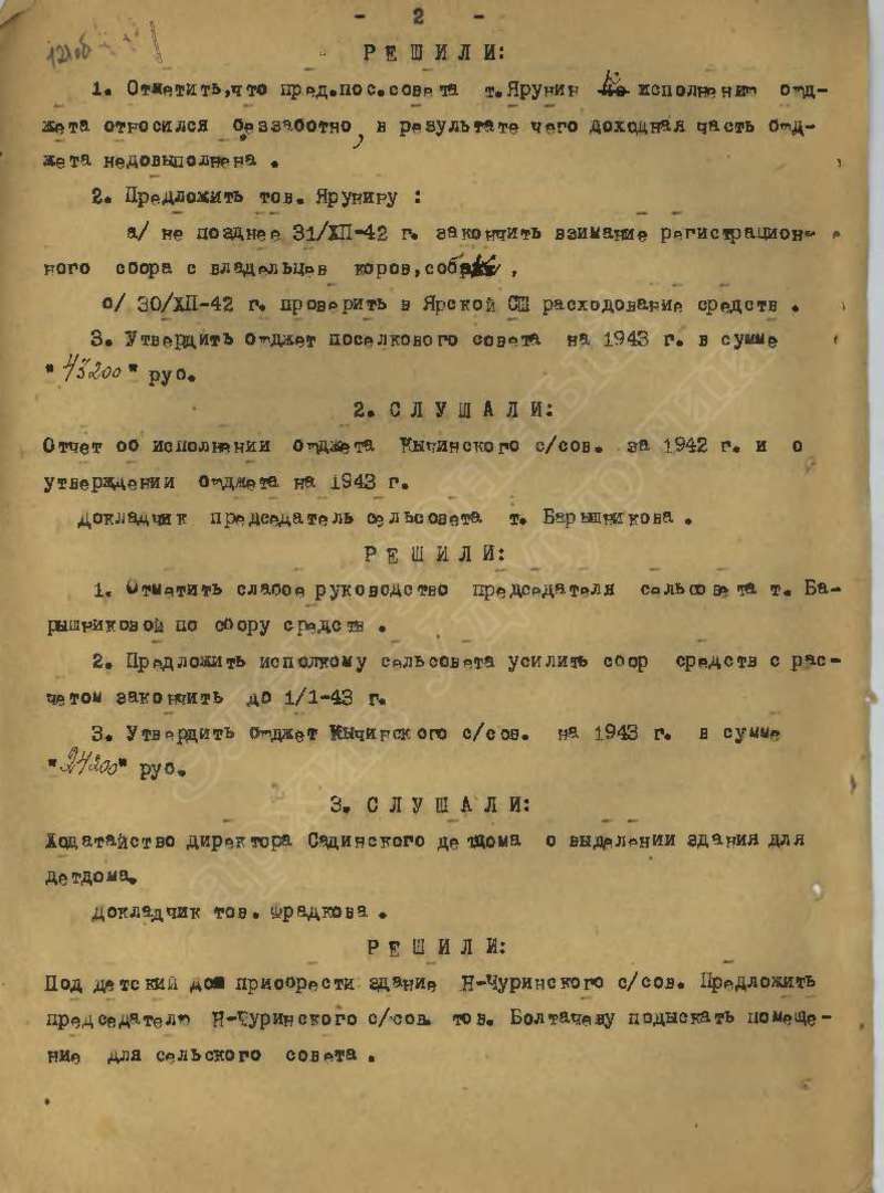 Протоколы заседаний исполкома райсовета