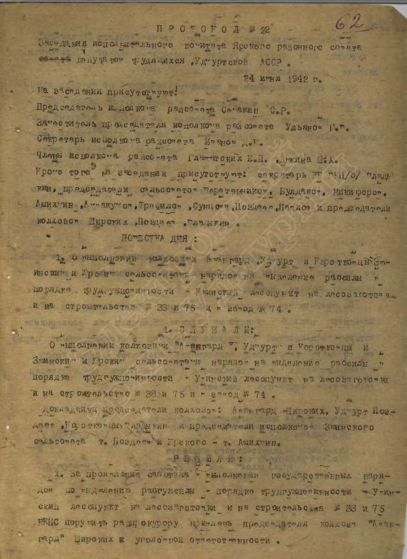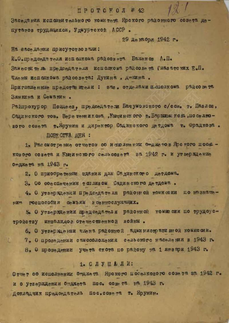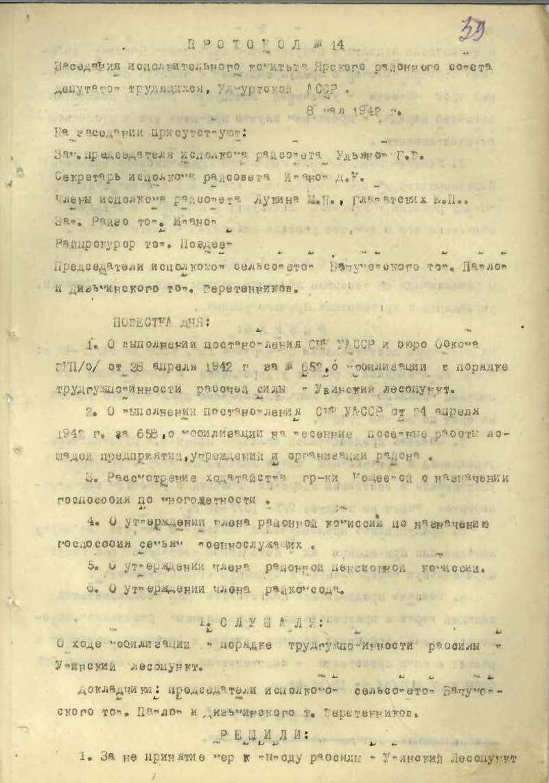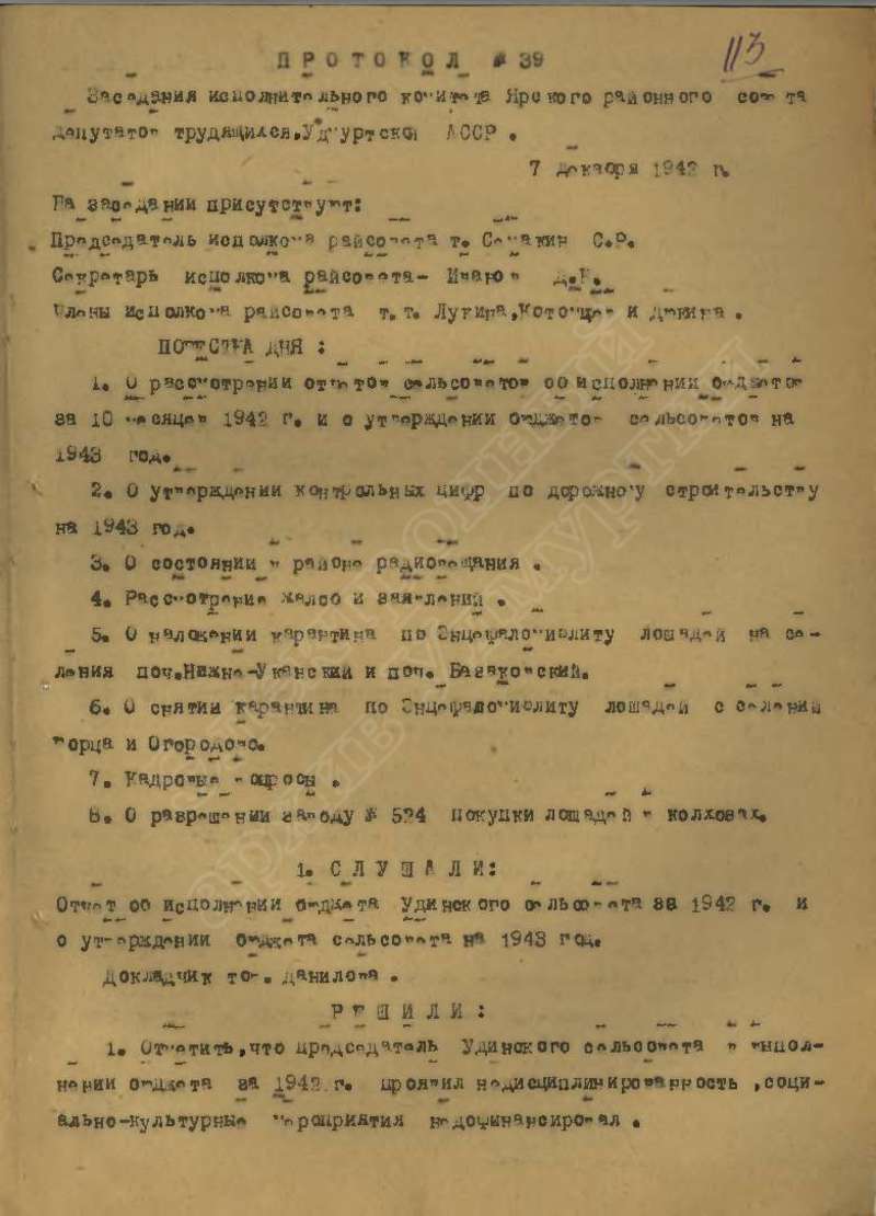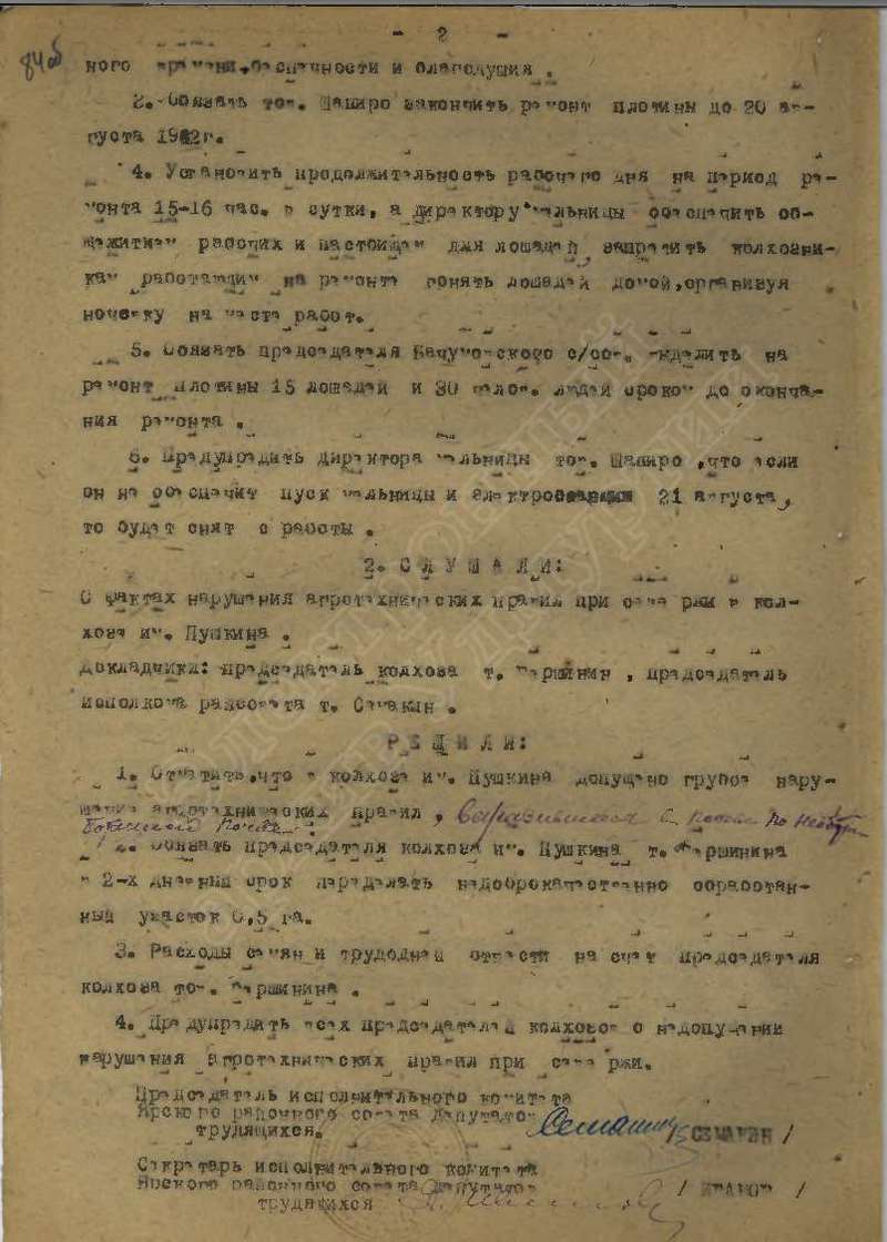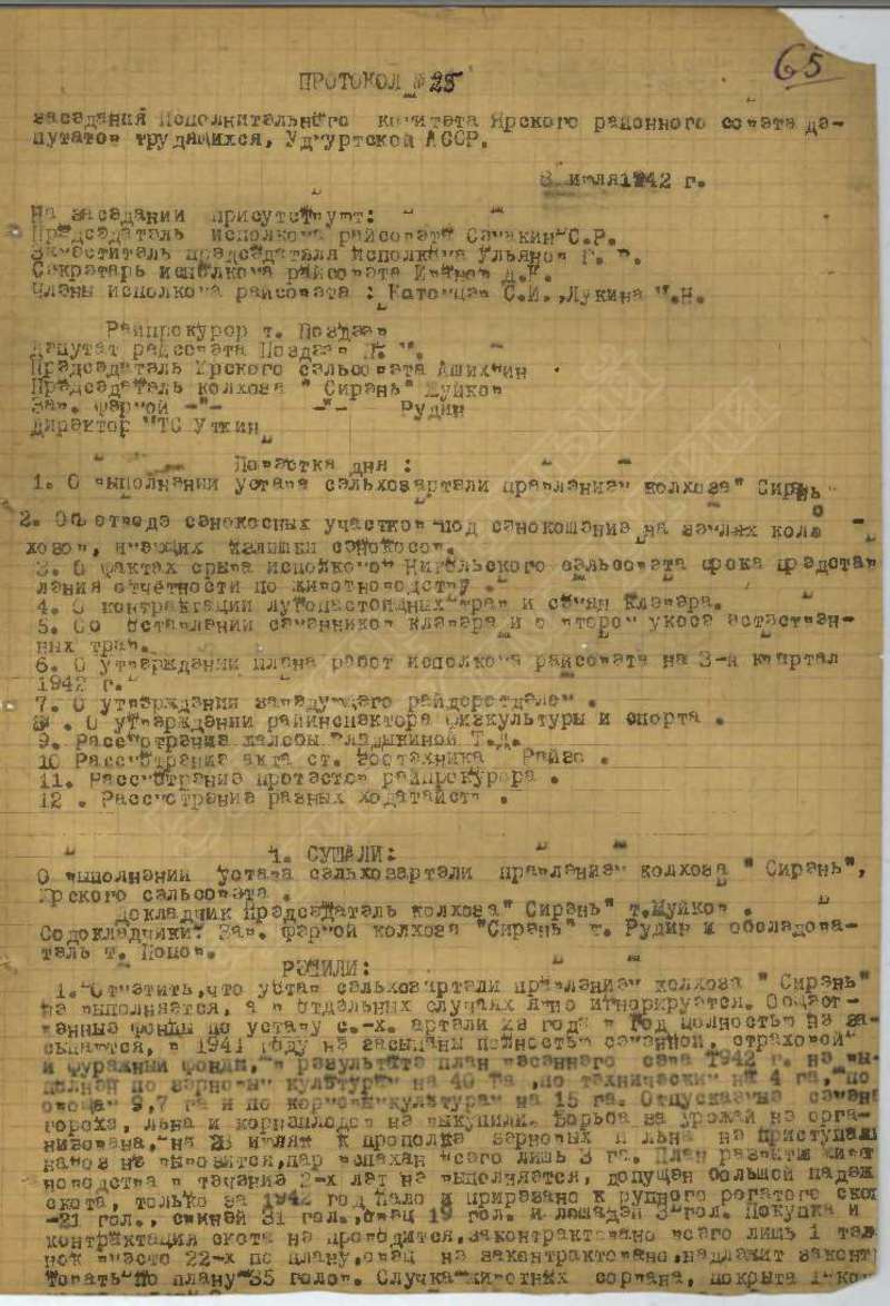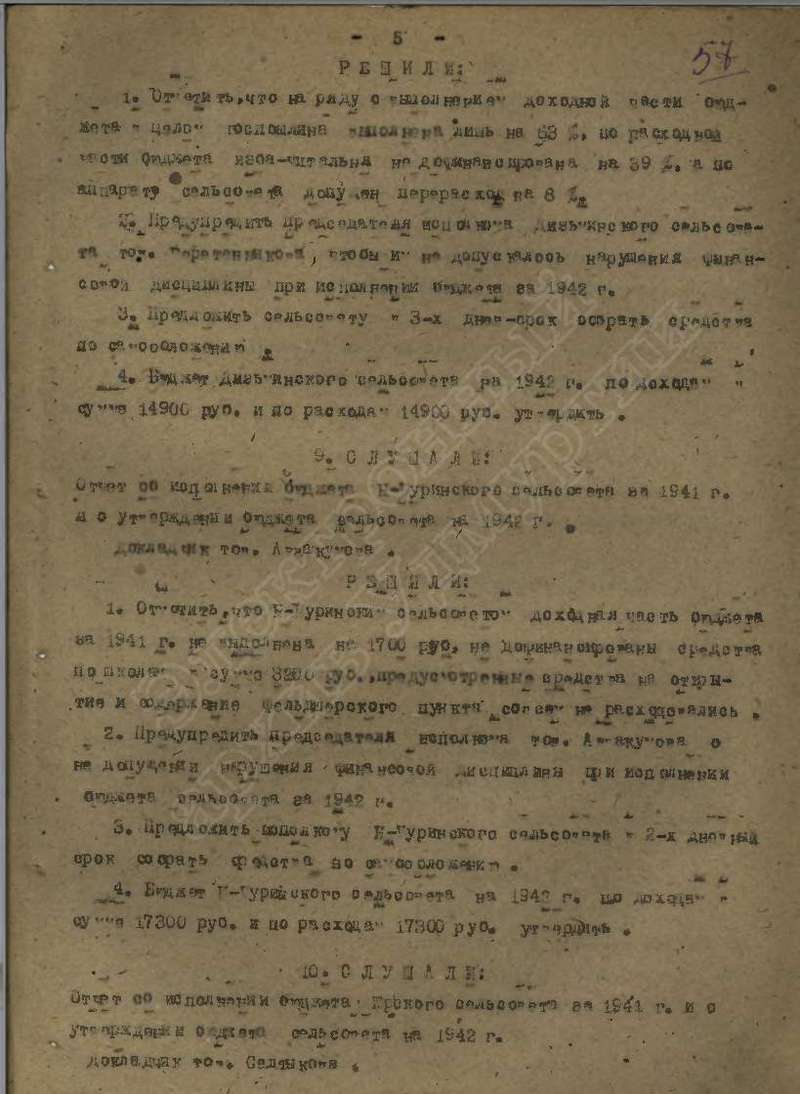 Протоколы заседаний исполкома райсовета