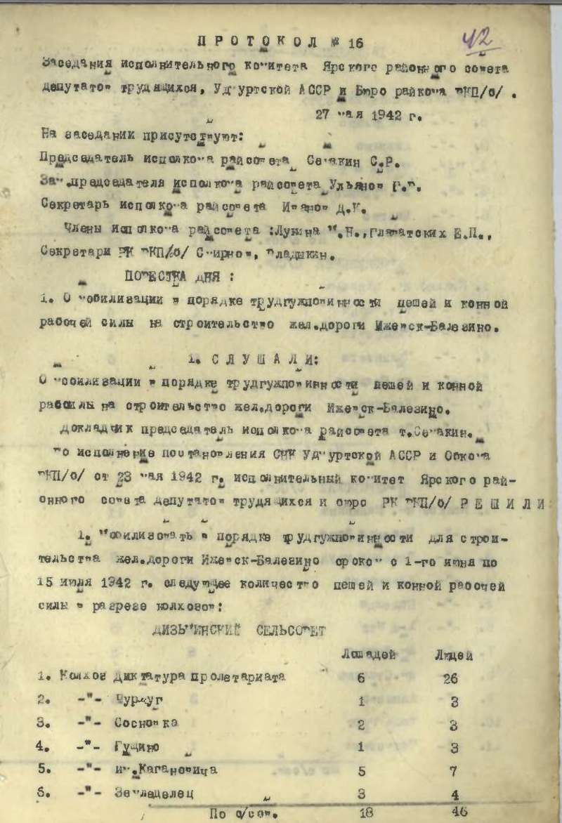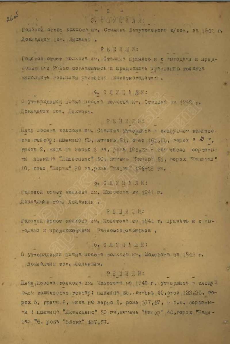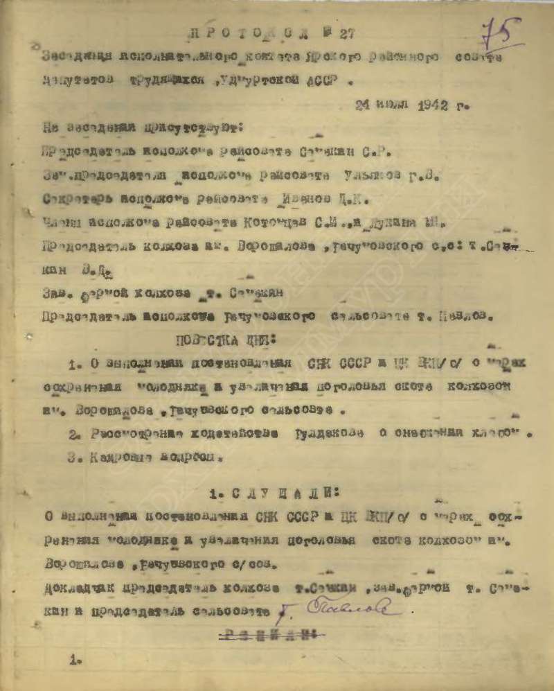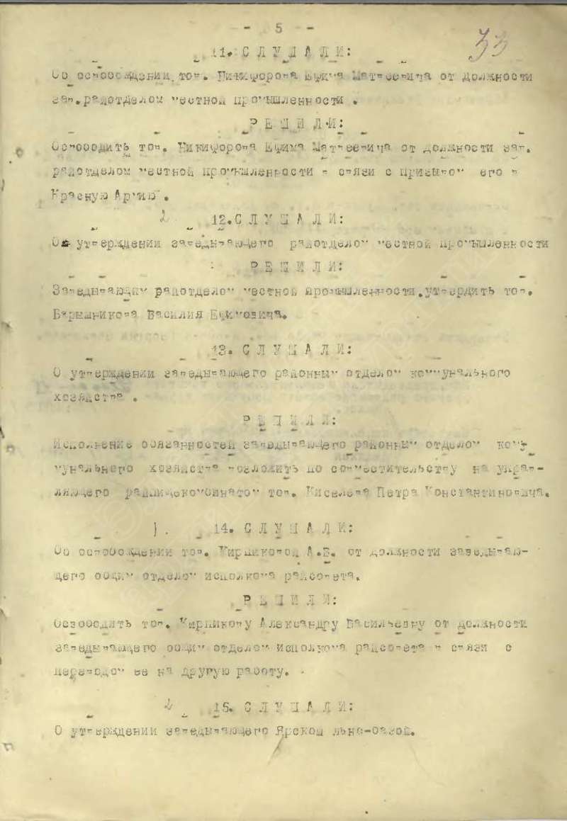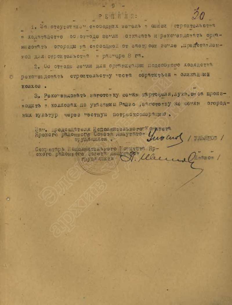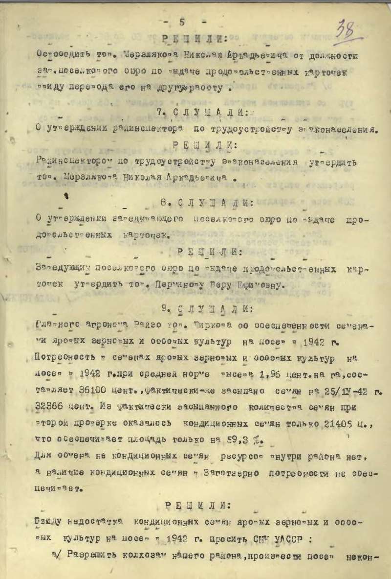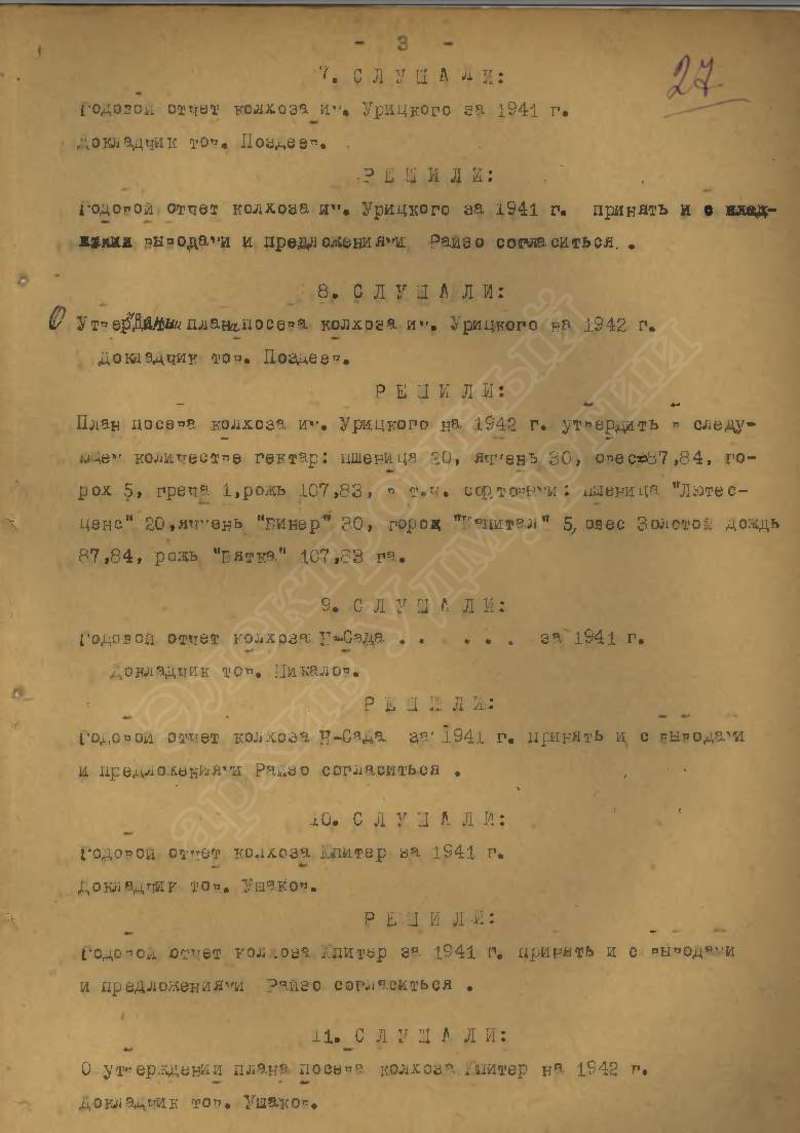 Протоколы заседаний исполкома райсовета