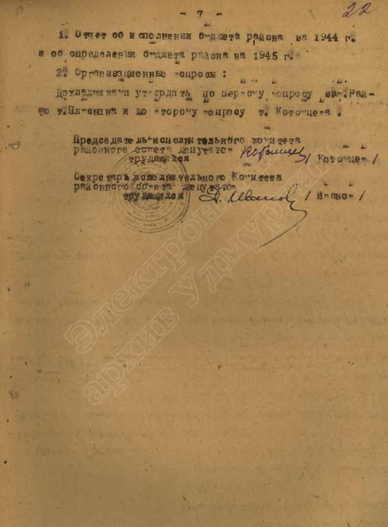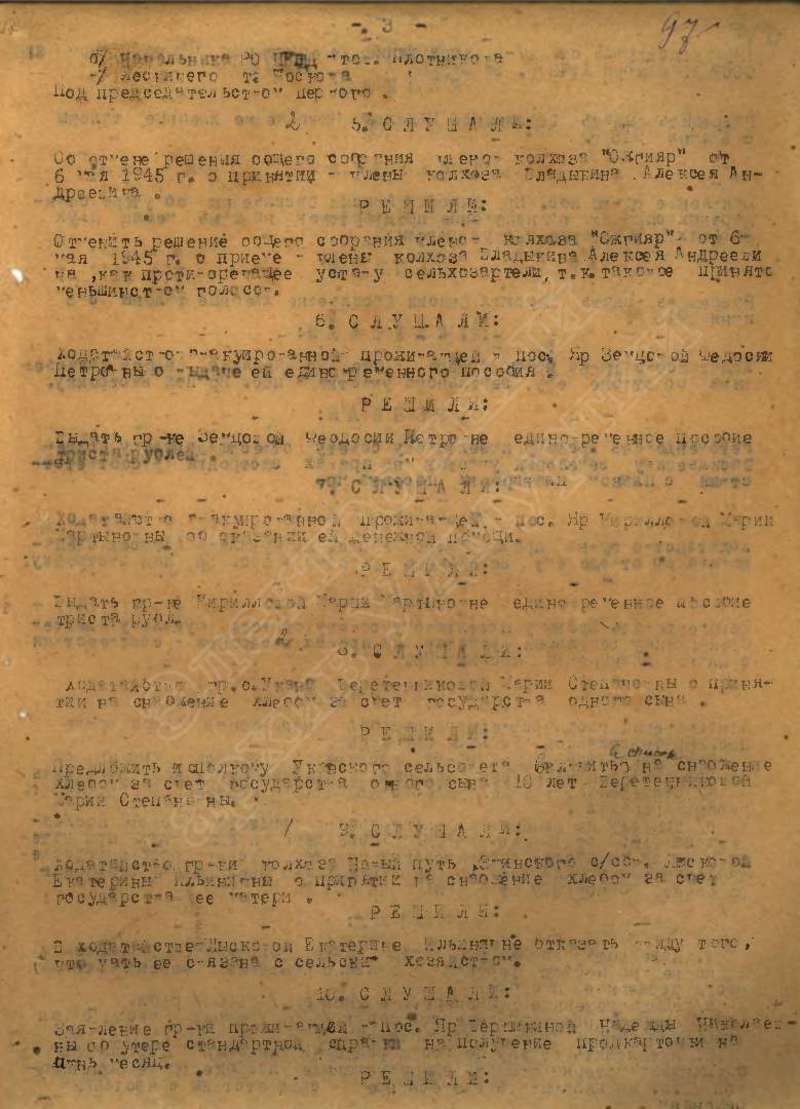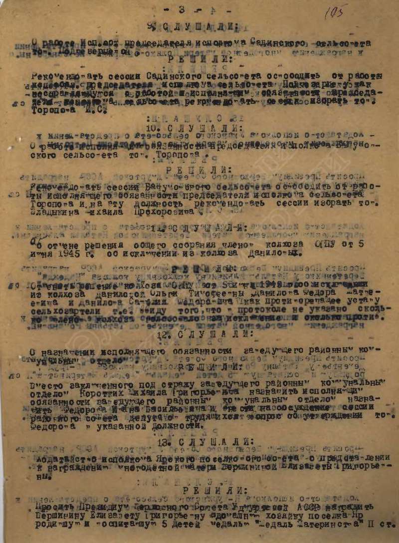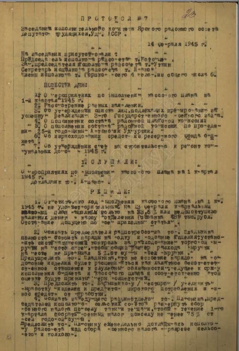 Протоколы заседаний исполкома райсовета
